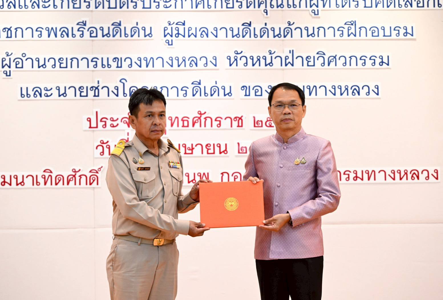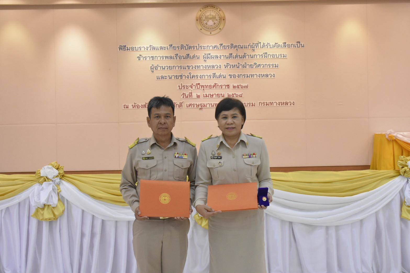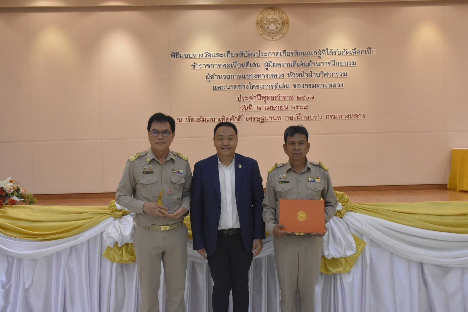 พิธีมอบรางวัลและเกียรติบัตรประกาศเกียรติคุณ แก่ผู้ที่ได้รับการคัดเลือกเป็นข้าราชการพลเรือนดีเด่น ผู้มีผลงานดีเด่นด้านการฝึกอบรม ผู้อำนวยการแขวงทางหลวง ผู้มีผลงานด้านวิศวกรรม และนายช่างโครงการก่อสร้างดีเด่น ของกรมทางหลวง ประจำปี 2567