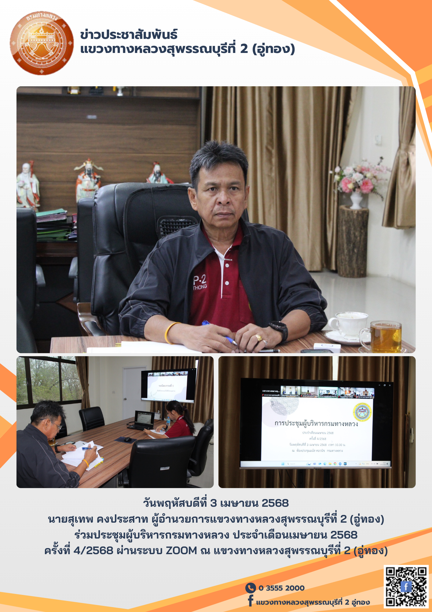 ประชุมผู้บริหารกรมทางหลวง ประจำเดือนเมษายน 2568 ครั้งที่ 4/2568 ผ่านระบบ ZOOM