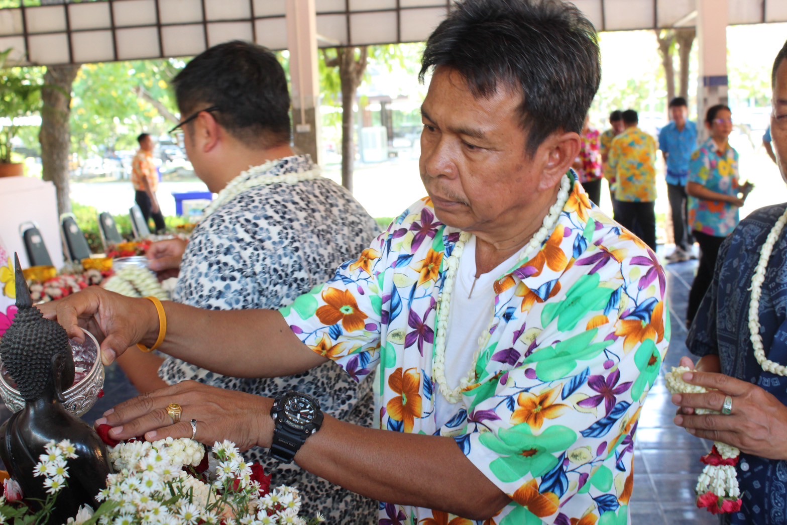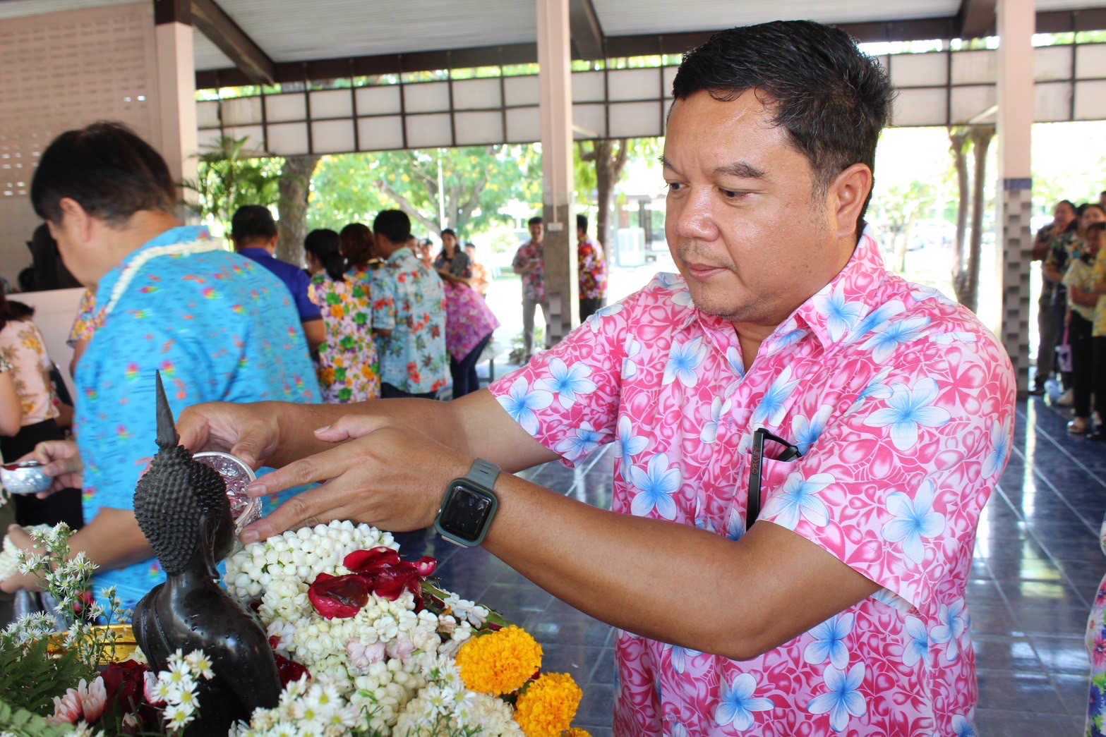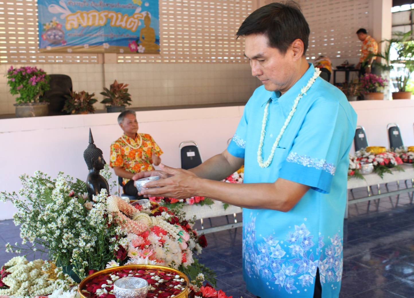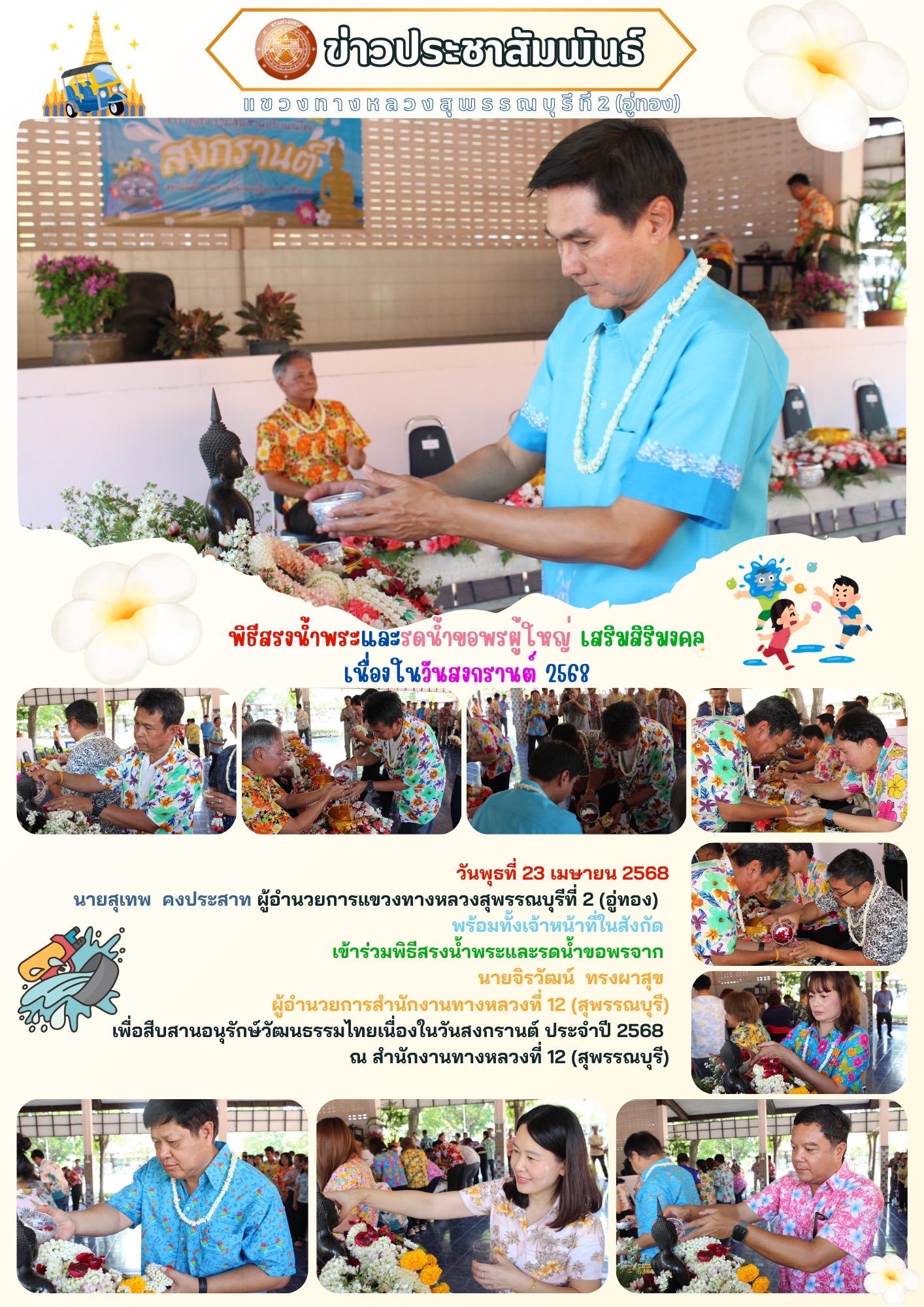เข้าร่วมพิธีสรงน้ำพระและรดน้ำขอพรจาก นายจิรวัฒน์ ทรงผาสุข ผู้อำนวยการสำนักงานทางหลวงที่ 12 (สุพรรณบุรี)
