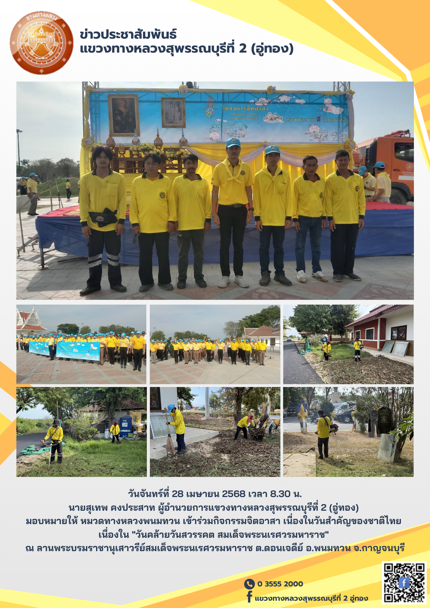 นายสุเทพ คงประสาท ผู้อำนวยการแขวงทางหลวงสุพรรณบุรีที่ 2 (อู่ทอง) มอบหมายให้ หมวดทางหลวงพนมทวน