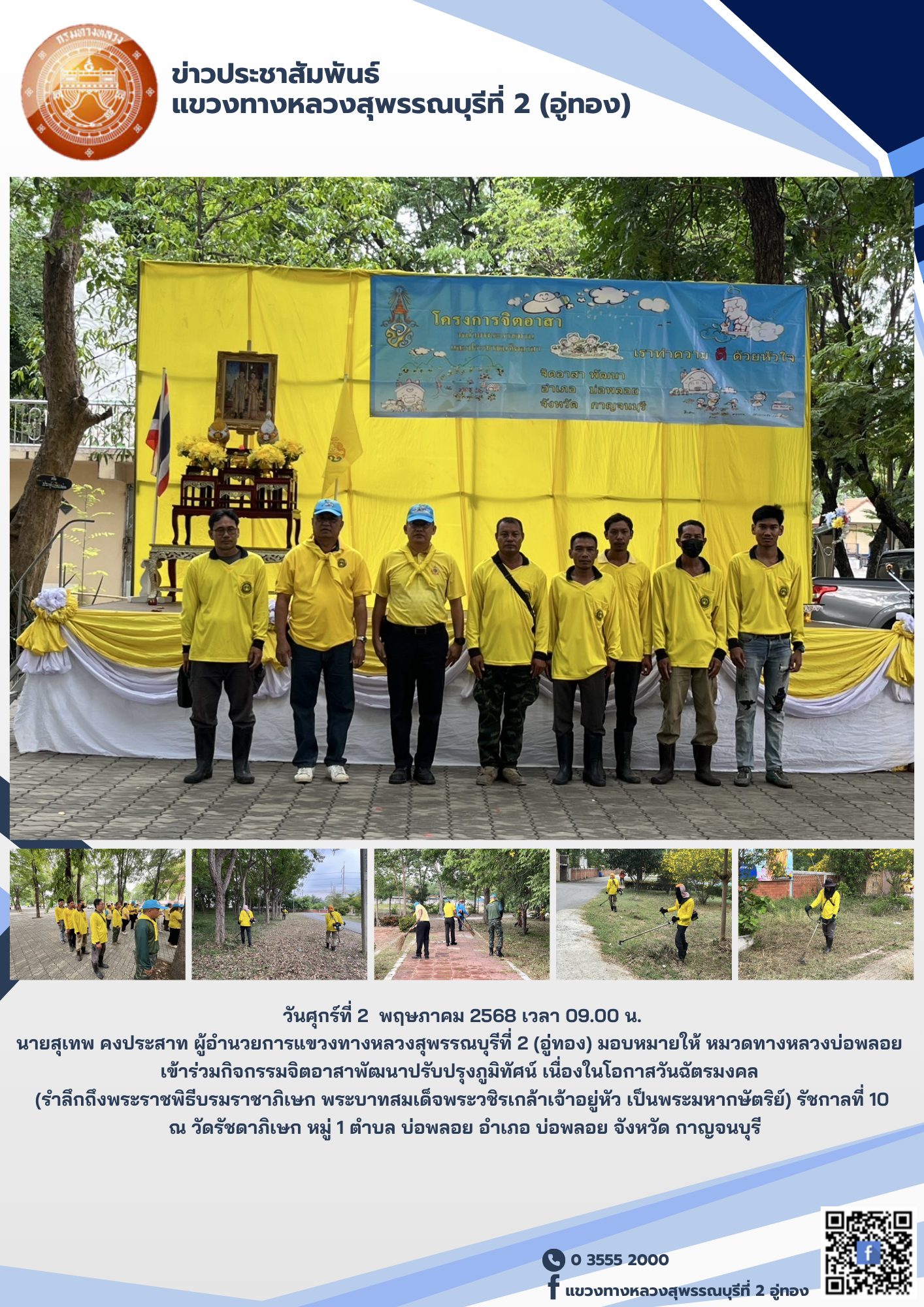 นายสุเทพ คงประสาท ผู้อำนวยการแขวงทางหลวงสุพรรณบุรีที่ 2 (อู่ทอง) มอบหมายให้ หมวดทางหลวงบ่อพลอย