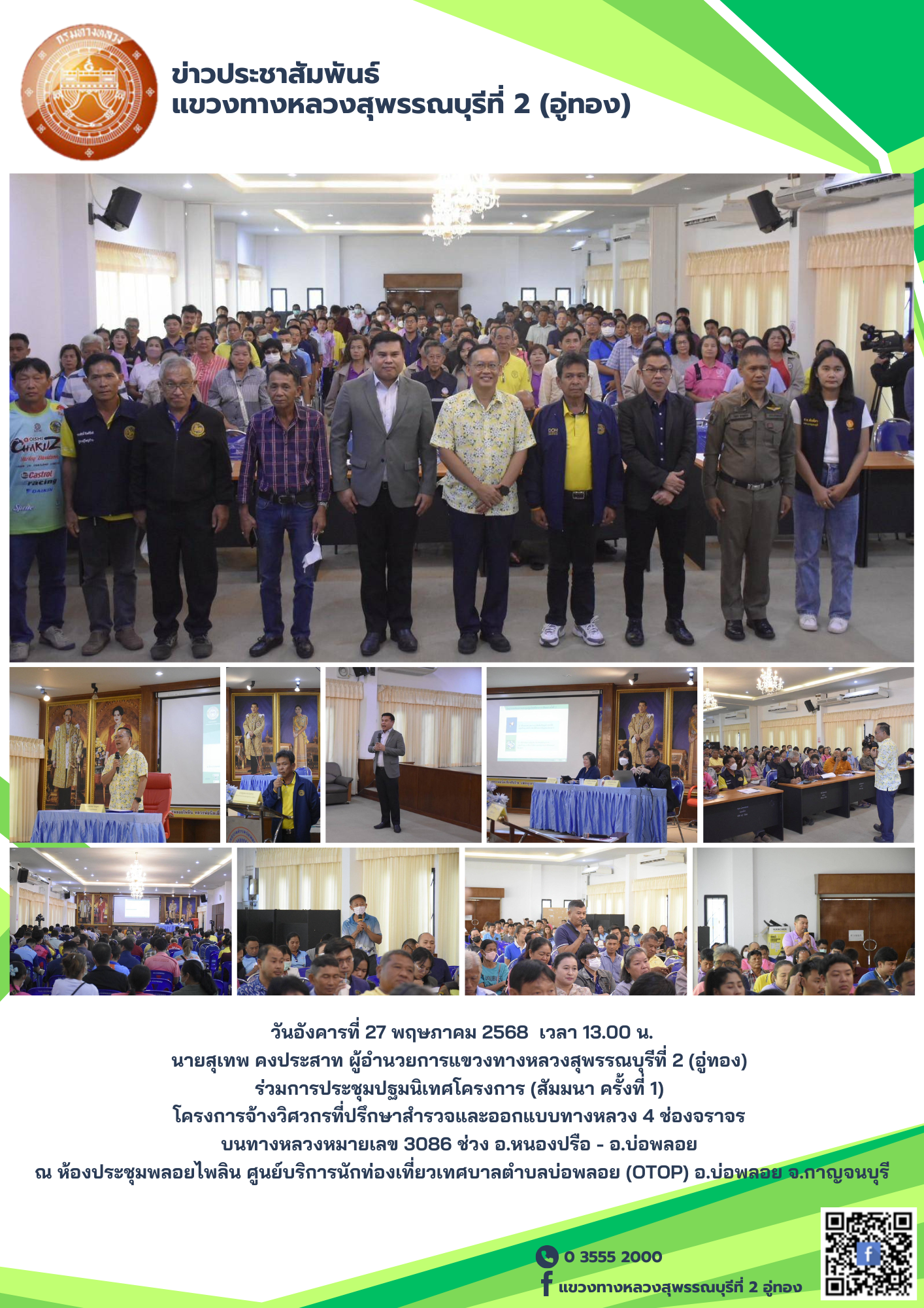 ประชุมปฐมนิเทศโครงการ (สัมมนา ครั้งที่ 1) โครงการจ้างวิศวกรที่ปรึกษาสำรวจและออกแบบทางหลวง 4 ช่องจราจร บนทางหลวงหมายเลข 3086 ช่วง อ.หนองปรือ - อ.บ่อพลอย