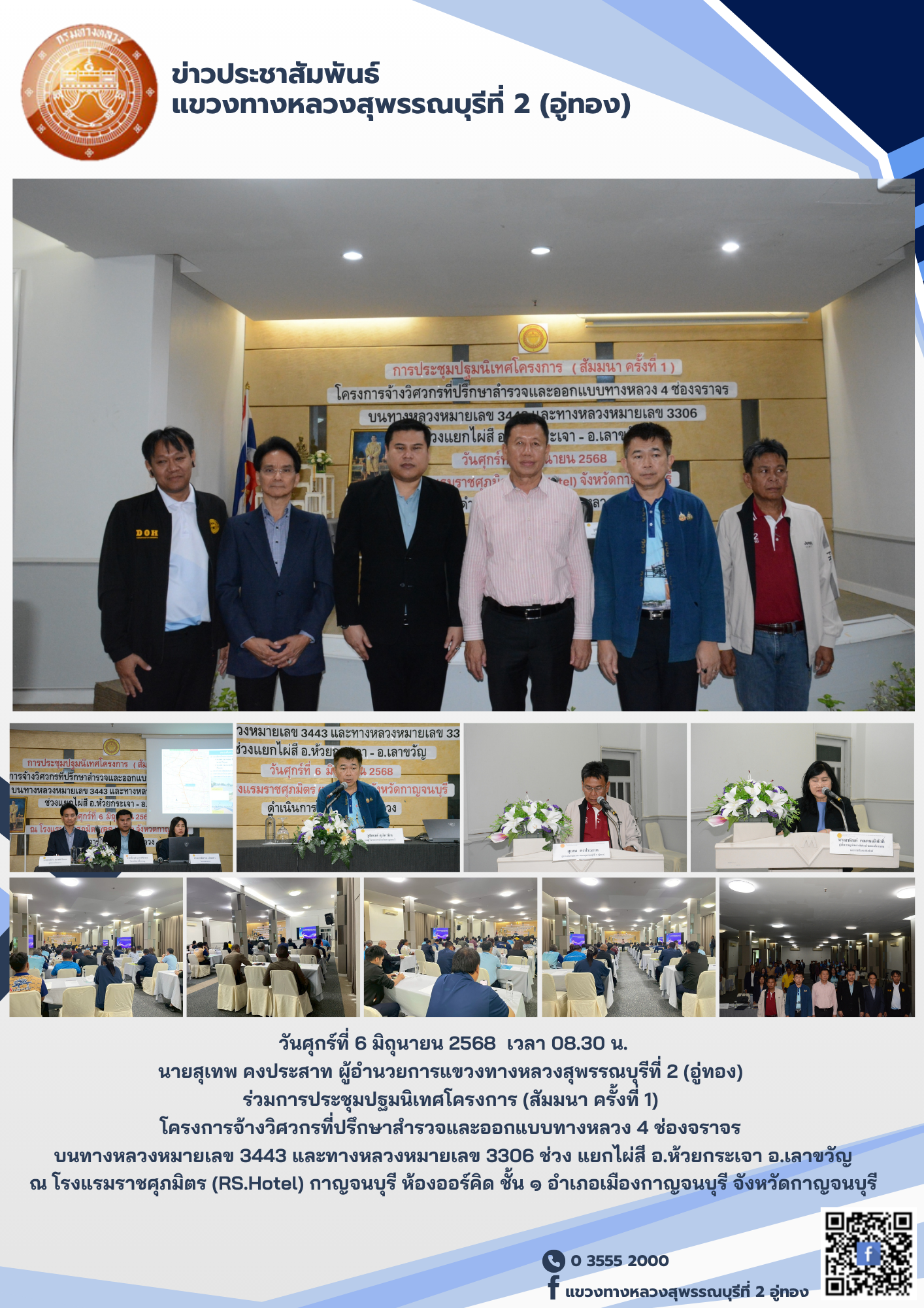 ประชุมปฐมนิเทศโครงการ (สัมมนา ครั้งที่ 1) โครงการจ้างวิศวกรที่ปรึกษาสำรวจและออกแบบทางหลวง 4 ช่องจราจร บนทางหลวงหมายเลข 3443 และทางหลวงหมายเลข 3306 ช่วง แยกไผ่สี อ.ห้วยกระเจา อ.เลาขวัญ