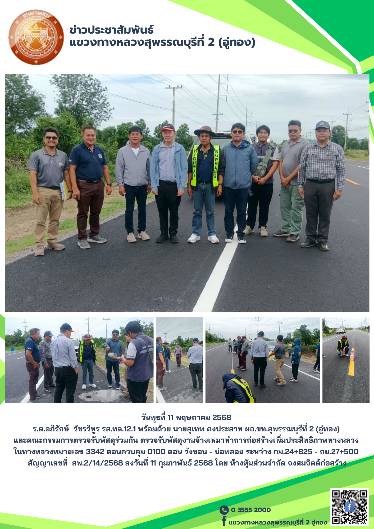 ตรวจรับพัสดุงานจ้างเหมาทำการก่อสร้างเพิ่มประสิทธิภาพทางหลวง ในทางหลวงหมายเลข 3342 ตอนควบคุม 0100 ตอน วังขอน - บ่อพลอย ระหว่าง กม.24+825 - กม.27+500