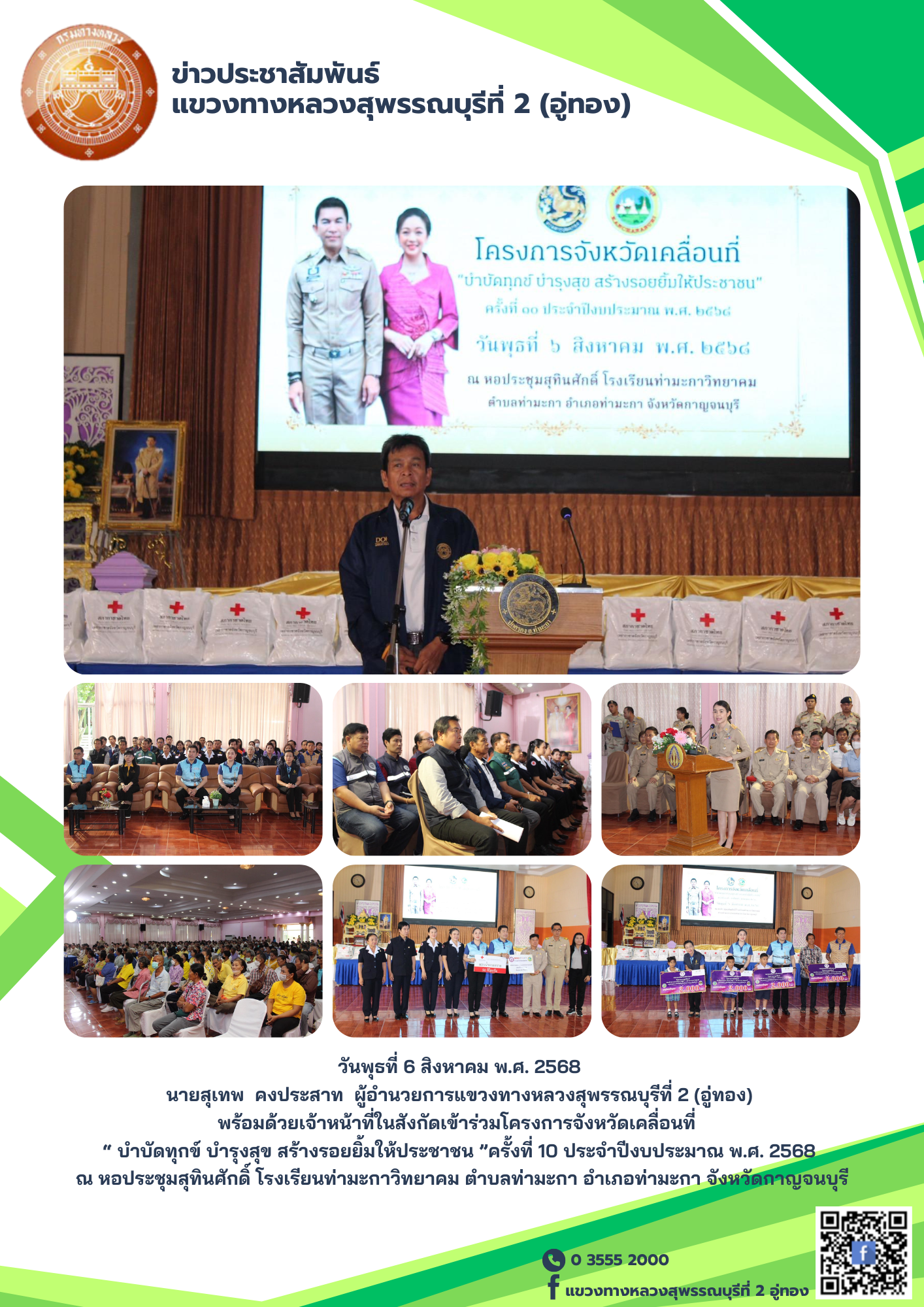 นายสุเทพ คงประสาท ผู้อำนวยการแขวงทางหลวงสุพรรณบุรีที่ 2 (อู่ทอง) พร้อมด้วยเจ้าหน้าที่ในสังกัด