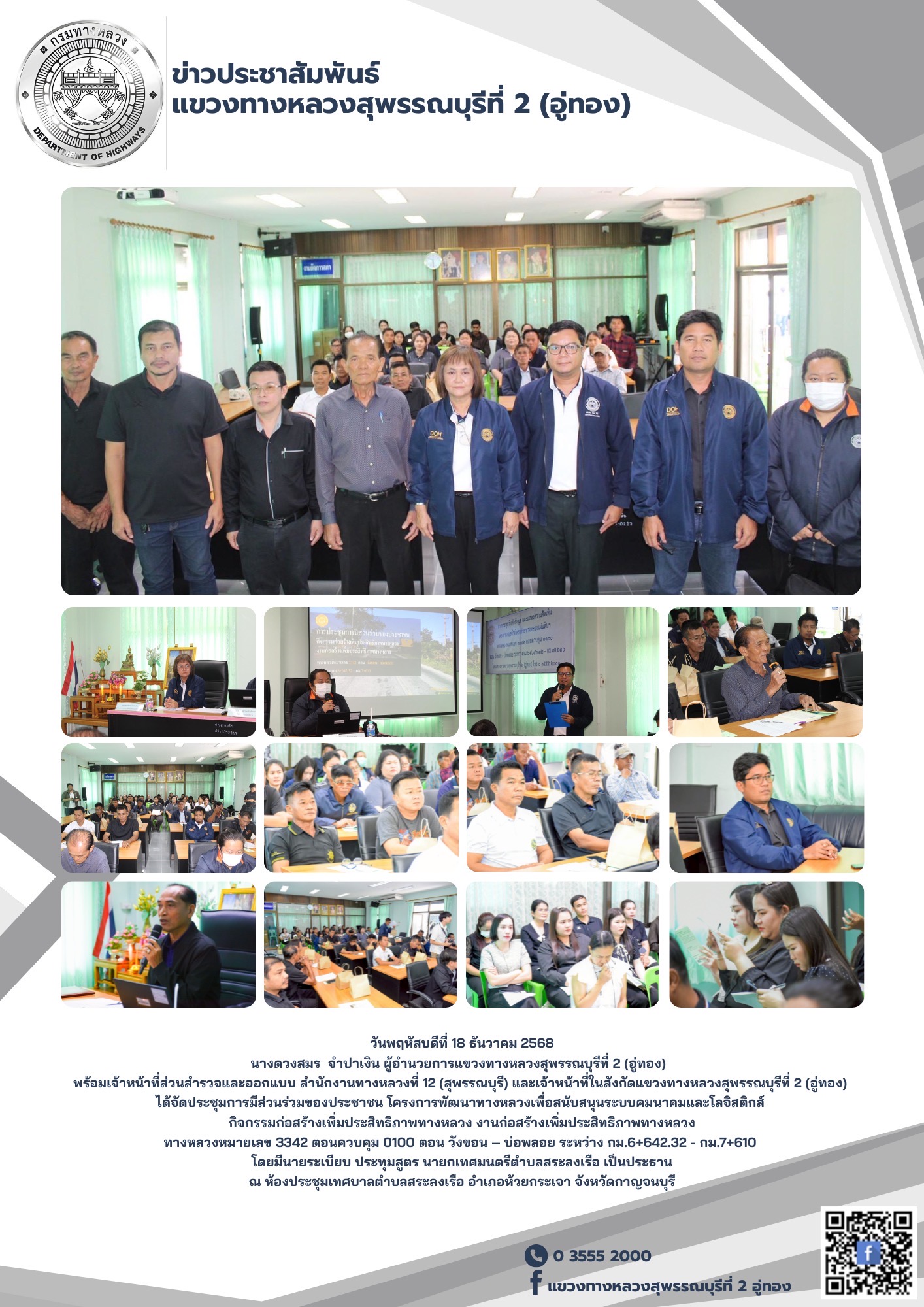 และเจ้าหน้าที่ในสังกัดแขวงทางหลวงสุพรรณบุรีที่ 2 (อู่ทอง) ได้จัดประชุมการมีส่วนร่วมของประชาชน