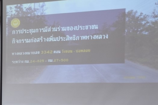 ได้จัดประชุมการมีส่วนร่วมของประชาชน กิจกรรมก่อสร้างเพิ่มประสิทธิภาพทางหลวง