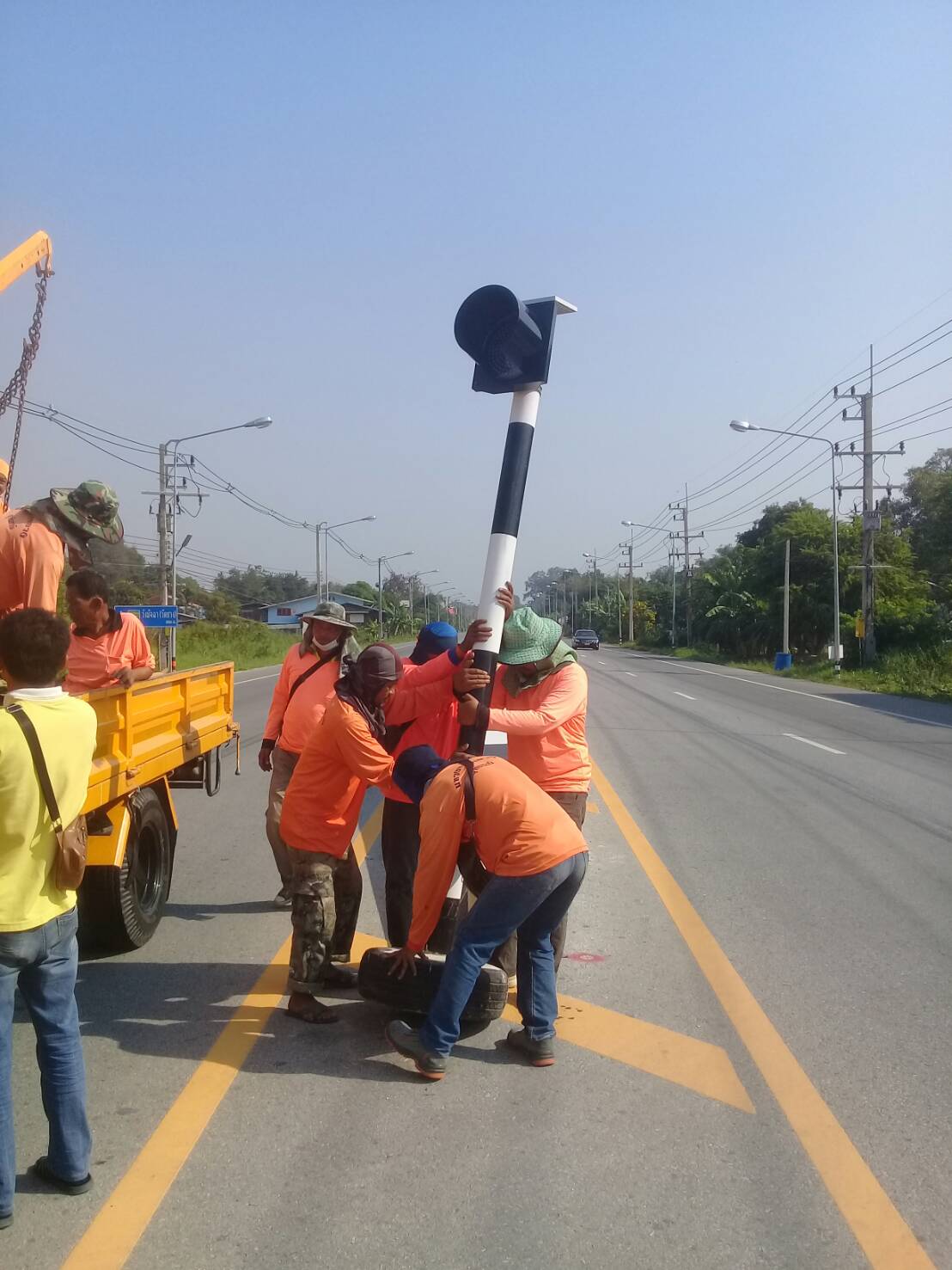 งานติดตั้งแบริเออร์และป้ายจราจรกระพริบพลังงานแสงอาทิตย์