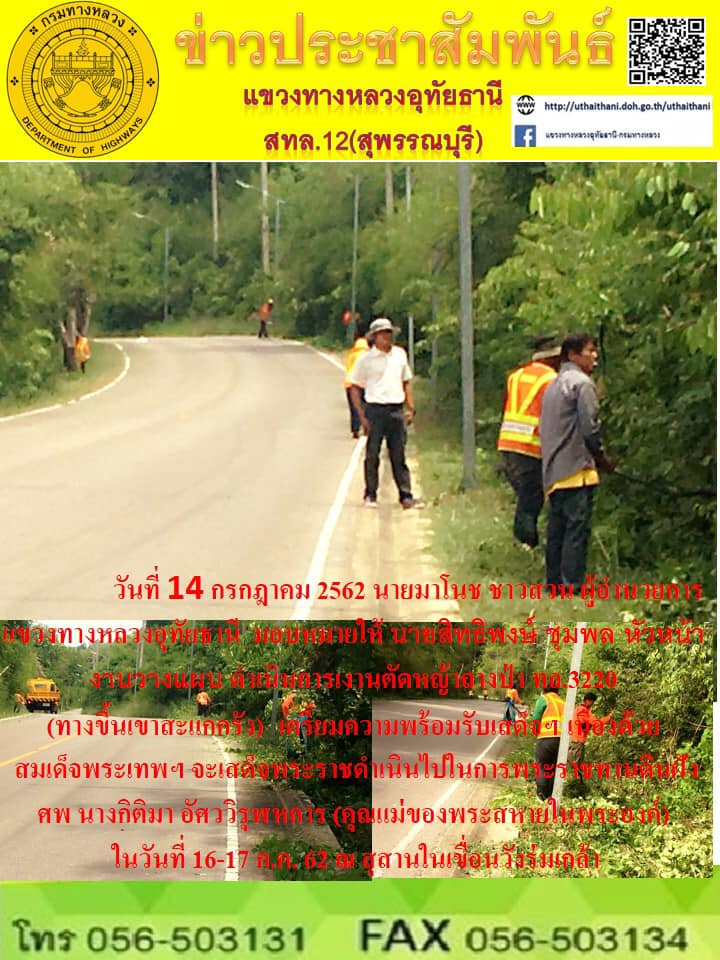 298 18/07/2562 ดำเนินการตัดหญ้า ตัดแต่งกิ่งไม้พร้อมรดน้ำต้นไม้ ในทางหลวงหมายเลข 3220,3221,3265 เพื่ออำนวยความสะดวกและปลอดภัยแก่ประชาชนผู้ใช้เส้นทาง