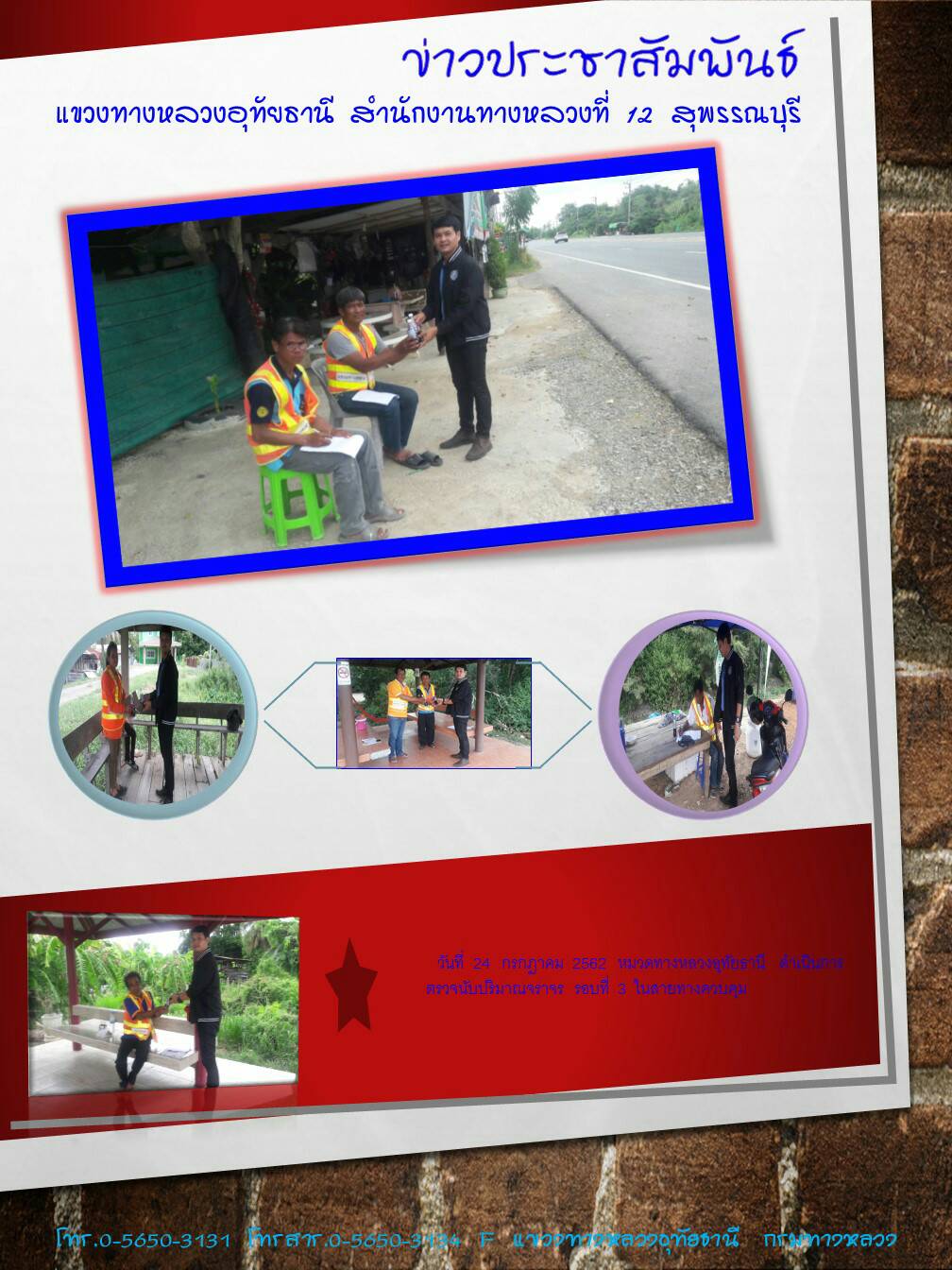 293 25/07/2562 วันที่ 24 กรกฎาคม 2562หมวดทางหลวงอุทัยธานี ดำเนินการตรวจนับปริมาณจราจร รอบที่ 3 ในสายทางควบคุม