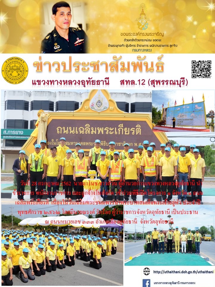 286 30/07/2562 ร่วมพิธีเปิดโครงการ 1 จังหวัด 1 ถนนเฉลิมพระเกียรติ เนื่องในวันเฉลิมพระชนมพรรษาพระบาทสมเด็จพระเจ้าอยู่หัว ประจำปีพุทธศักราช 2562