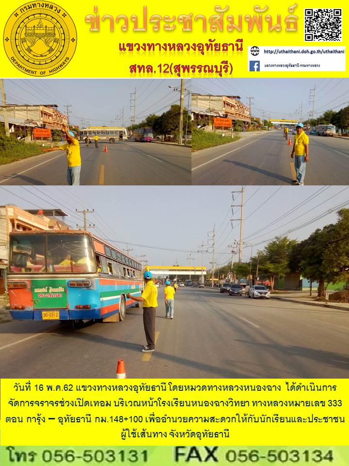 วันที่ 16 พฤษภาคม 2562 เวลา 07.30น. หมวดทางหลวงบ้านไร่ ดำเนินการติดตั้งอุปกรณ์อำนวยความปลอดภัย ตามรูปแบบมาตรฐานครบถ้วน บริเวณหน้าโรงเรียนบ้านไร่วิทยา ทางหลวงหมายเลข 3011 ตอนบ้านไร่- บ้านใต้ ที่กม.4+600