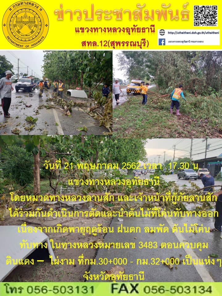 ตัดต้นไม้ล้มขวางผิวทางจราจร ทล.333 อุทัยธานี-สะพานข้ามแม่น้ำเจ้าพระยา กม.177+250 ซ้ายทาง