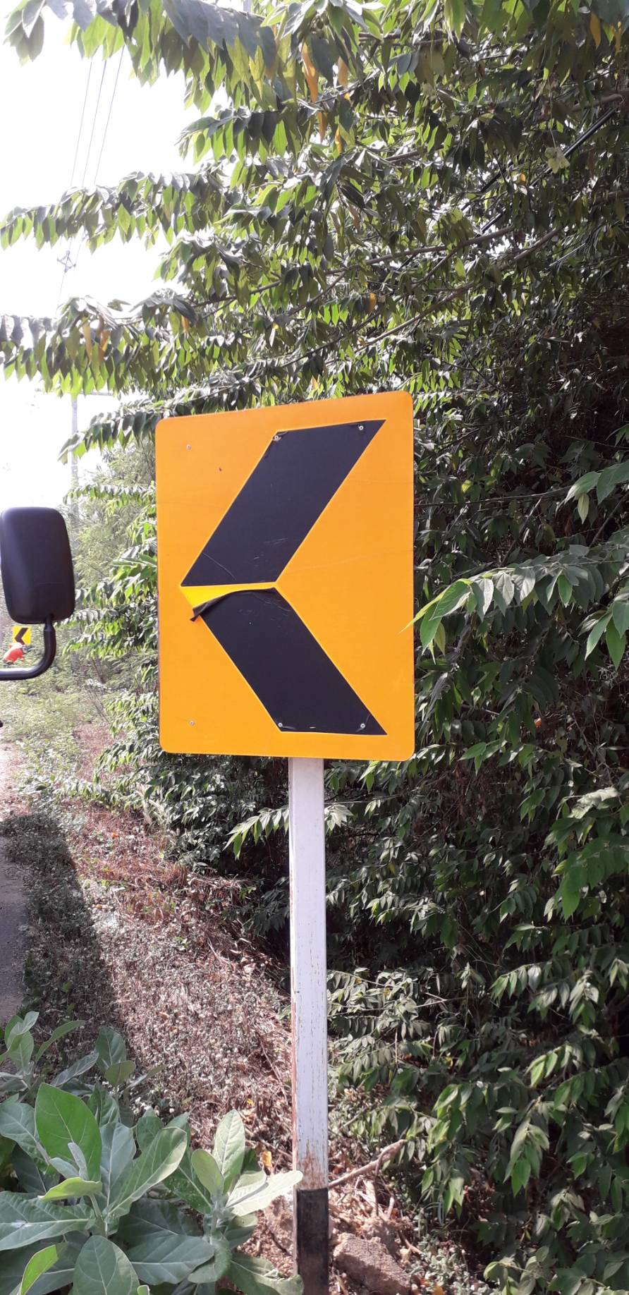 งานติดตั้งป้ายเตือนทางแคบข้างหน้า