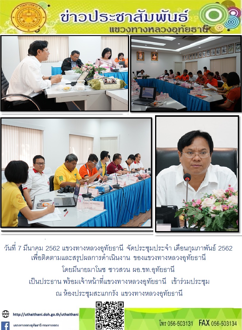 ประชุมประจำเดือน พฤศจิกายน 2562 เพื่อติดตามและสรุปผลการดำเนินงาน ของแขวงทางหลวงอุทัยธานี