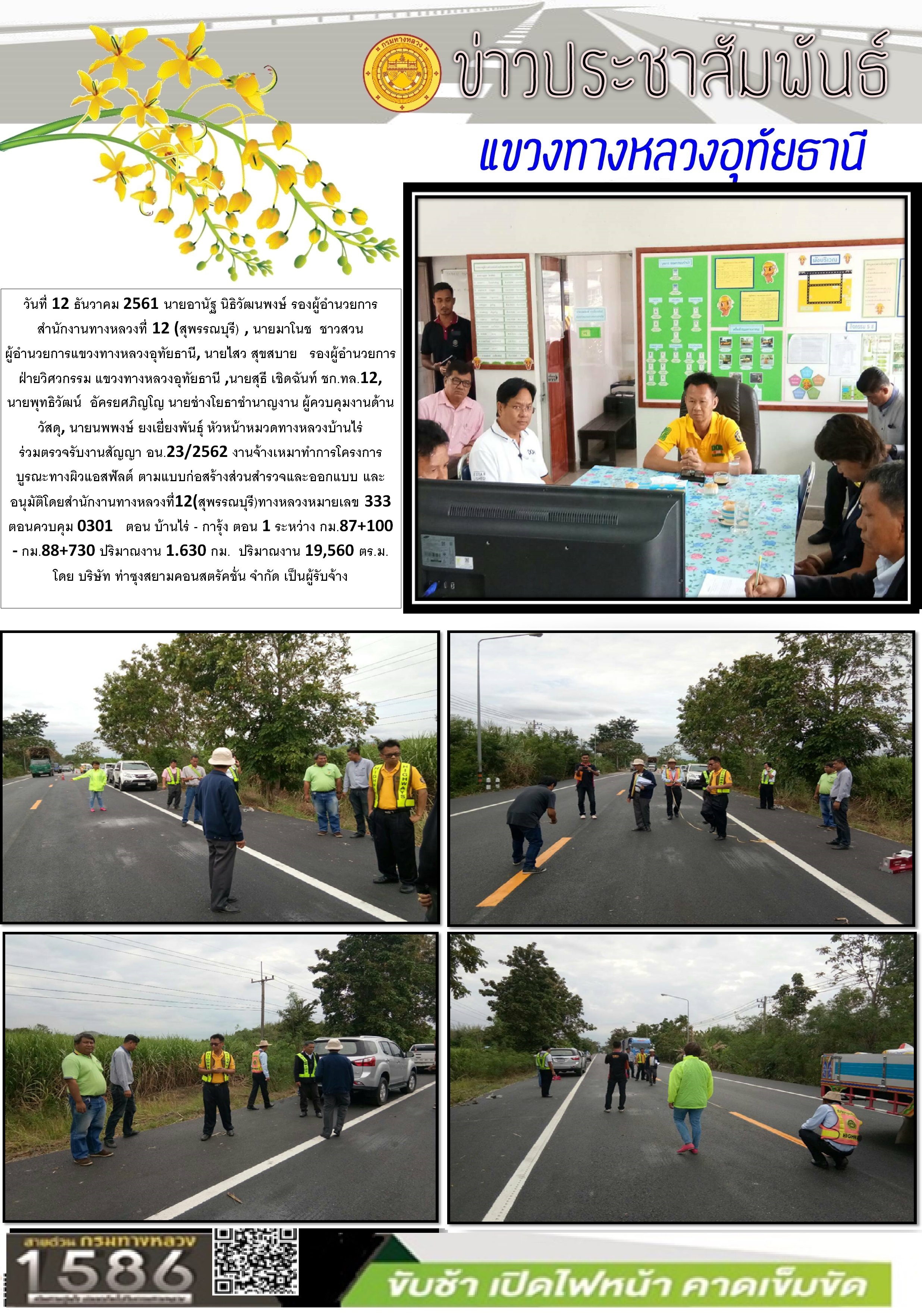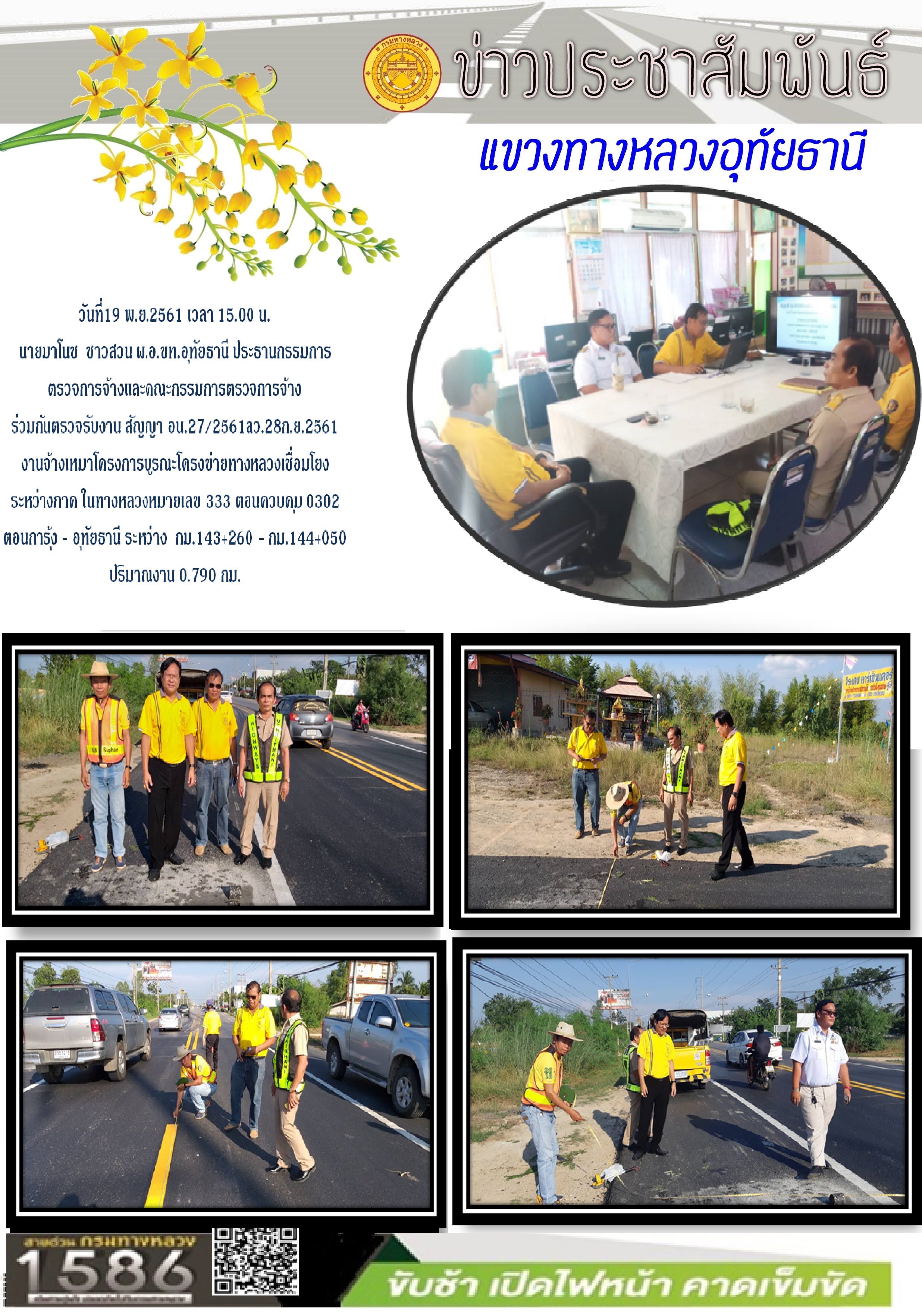 ตรวจรับงานโครงการบูรณะโครงข่ายทางหลวงเชื่อมโยงระหว่างภาค ทางหลวงหมายเลข 333 ตอนบ้านไร่-การุ้ง ระหว่าง กม.99+044 - กม.99+548 ระยะทางยาว 0.504 กม