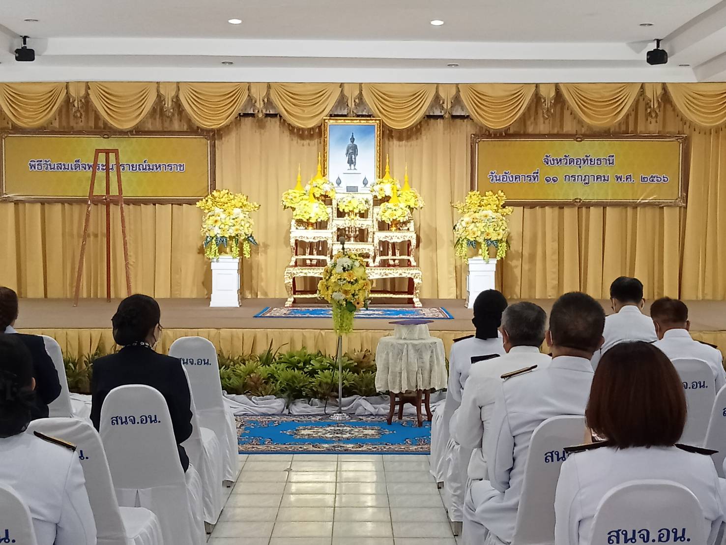 นายสมโภช โอทาตะ ผู้อำนวยการแขวงทางหลวงอุทัยธานี พร้อมด้วยข้าราชการในสังกัด ร่วมพิธีถวายเครื่องราชสักการะและวางพานพุ่ม และพิธีจุดเทียนถวายพระพรชัยมงคล
