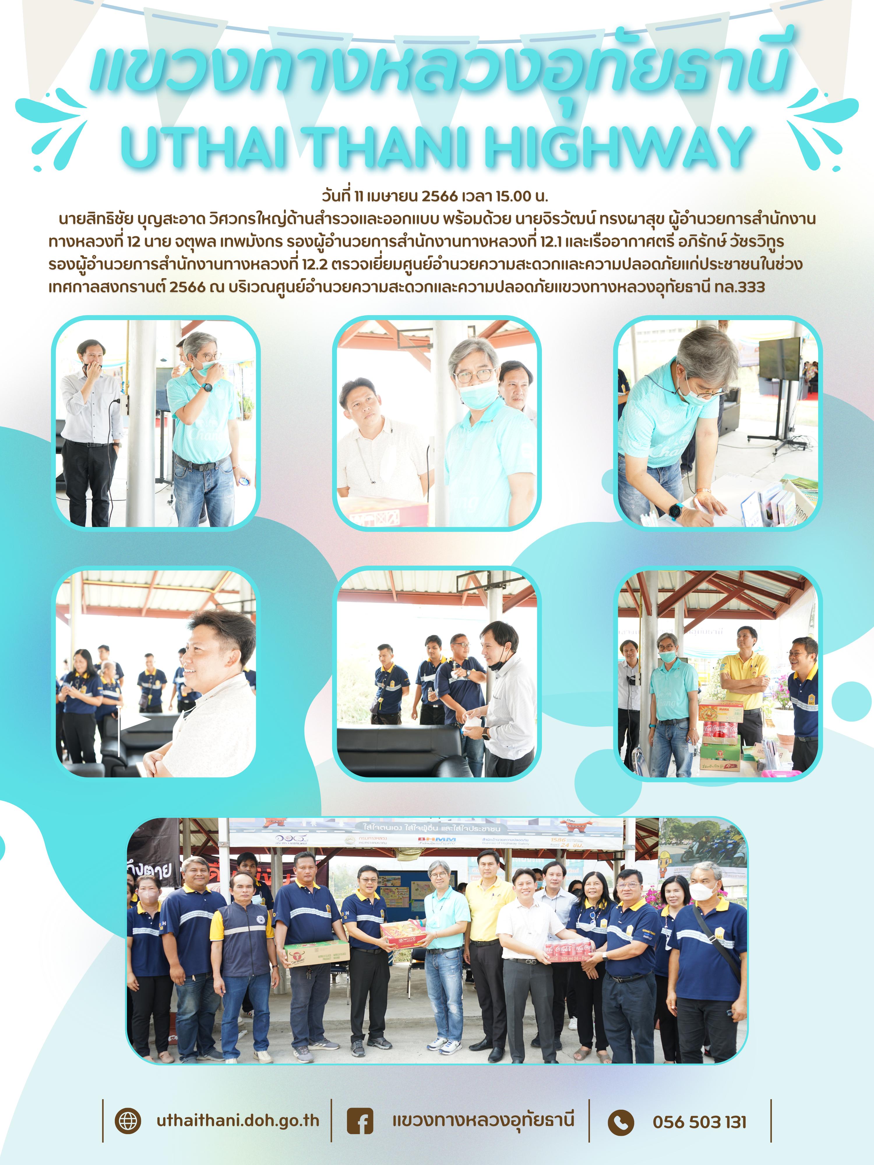 นายสิทธิชัย บุญสะอาด วิศวกรใหญ่ด้านสำรวจและออกแบบ พร้อมคณะ ตรวจเยี่ยมศูนย์อำนวยความสะดวกและความปลอดภัยแก่ประชาชนในช่วงเทศกาลสงกรานต์ 2566