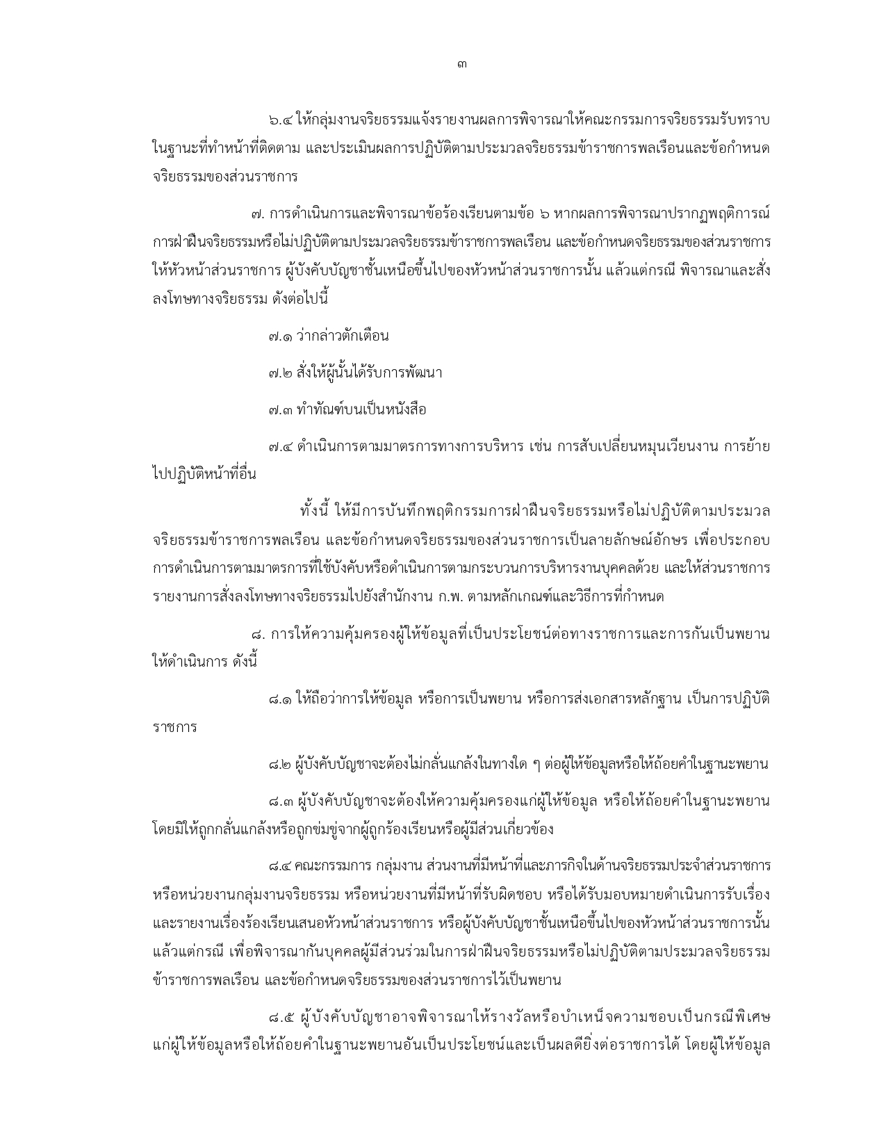 การดำเนินการกรณีข้าราชการฝ้าฝืนจริยธรรมหรือไม่ปฏิบัติตามประมวลจริยธรรมข้าราชการพลเรือน และข้อกำหนดจริยธรรมของส่วนราซการ