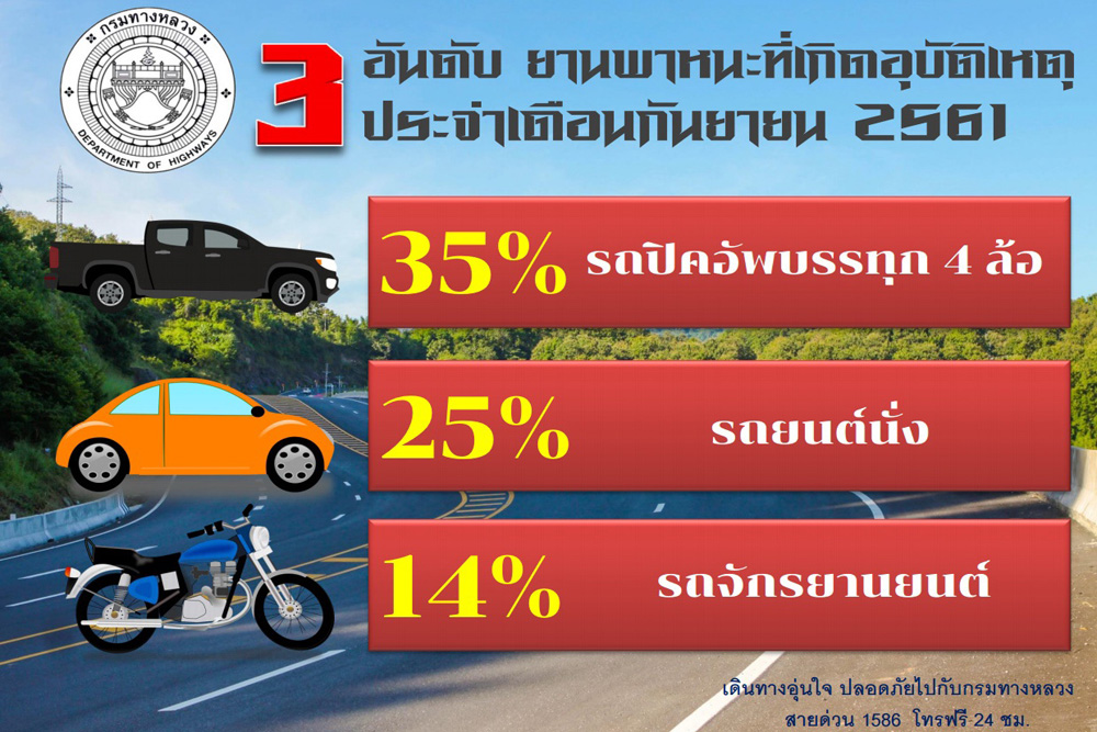 infographic ยานพาหนะที่เกิดอุบัติสูงสุด3อันดับแรก ประจำเดือนกันยายน2561