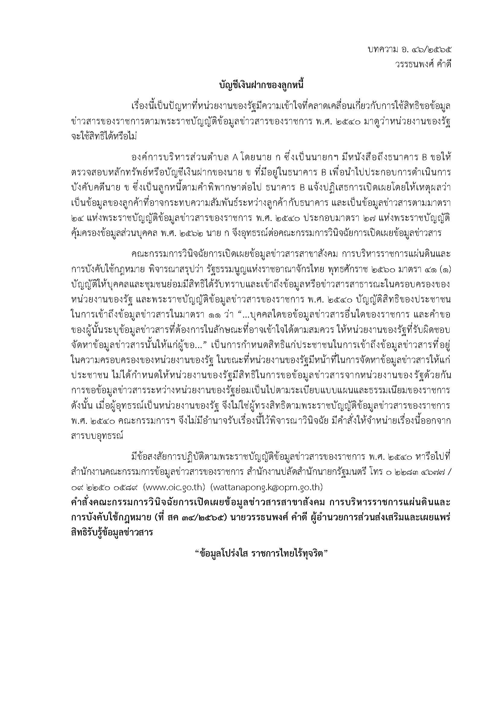 ความรู้เกี่ยวกับพระราชบัญญัติข้อมูลข่าวสารของราชการ พ.ศ. 2540