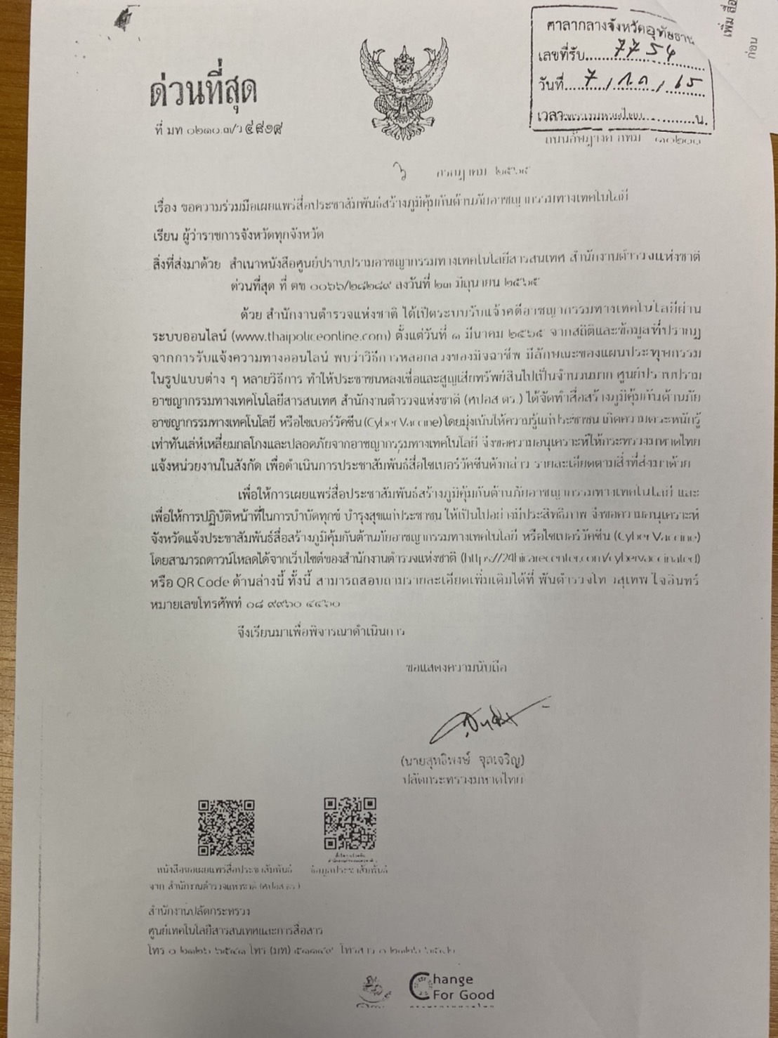 สื่อประชาสัมพันธ์สร้างภูมิคุ้มกันต้านภัยอาชญากรรมทางเทคโนโลยี จึงขอความร่วมมือจากส่วนราชการ/หน่วยงาน