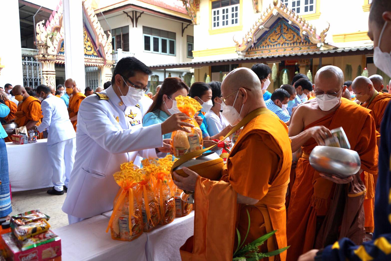 ร่วมกิจกรรมเฉลิมพระเกียรติสมเด็จพระนางเจ้าสิริกิติ์ พระบรมราชินีนาถ พระบรมราชชนนีพันปีหลวง เวลา 06.30 น. พิธีทำบุญตักบาตร