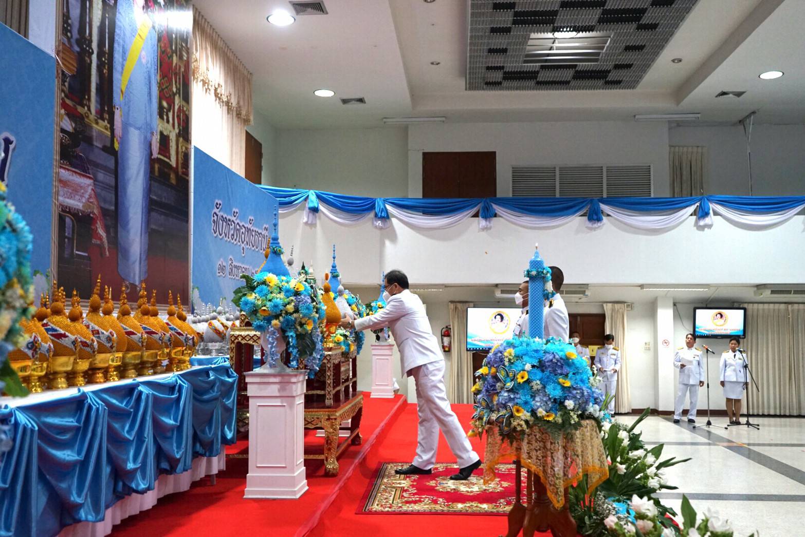และในช่วงค่ำ ได้ร่วมพิธีถวายเครื่องราชสักการะและวางพานพุ่ม และพิธีจุดเทียนถวายพระพรชัยมงคล ณ ห้องประชุมอาคารชั้น 2