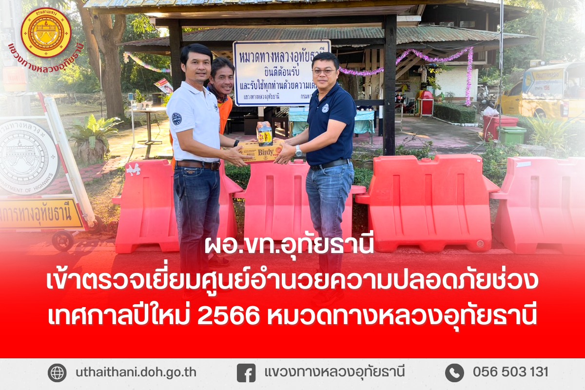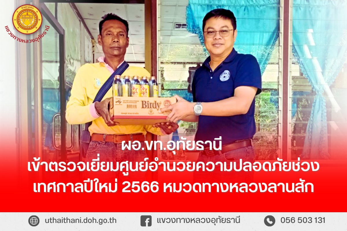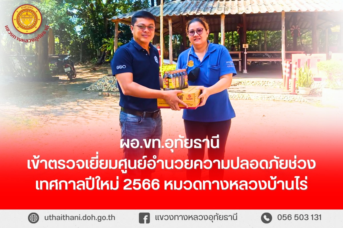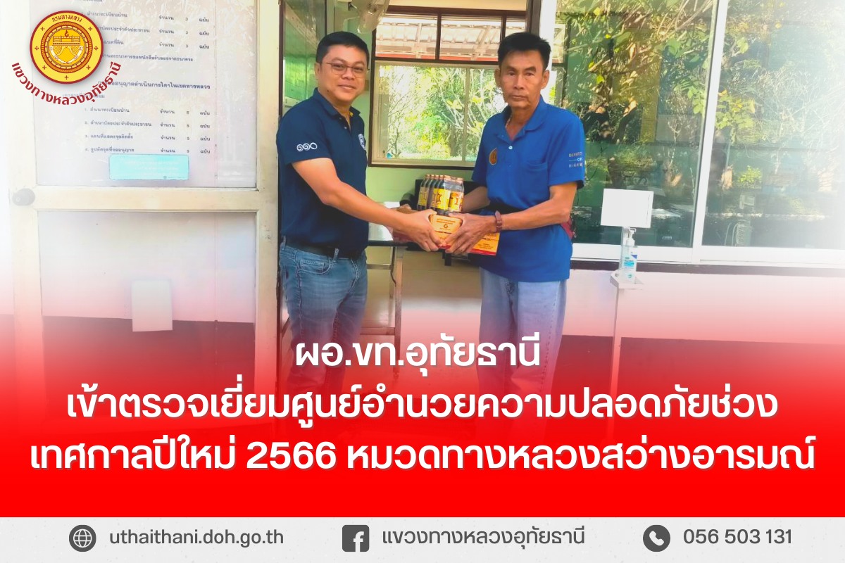 วันที่ 30 ธันวาคม 2565 นายสมโภช โอทาตะ ผอ.ขท.อุทัยธานี เข้าตรวจเยี่ยมศูนย์อำนวยความปลอดภัยช่วงเทศกาลปีใหม่ 2566