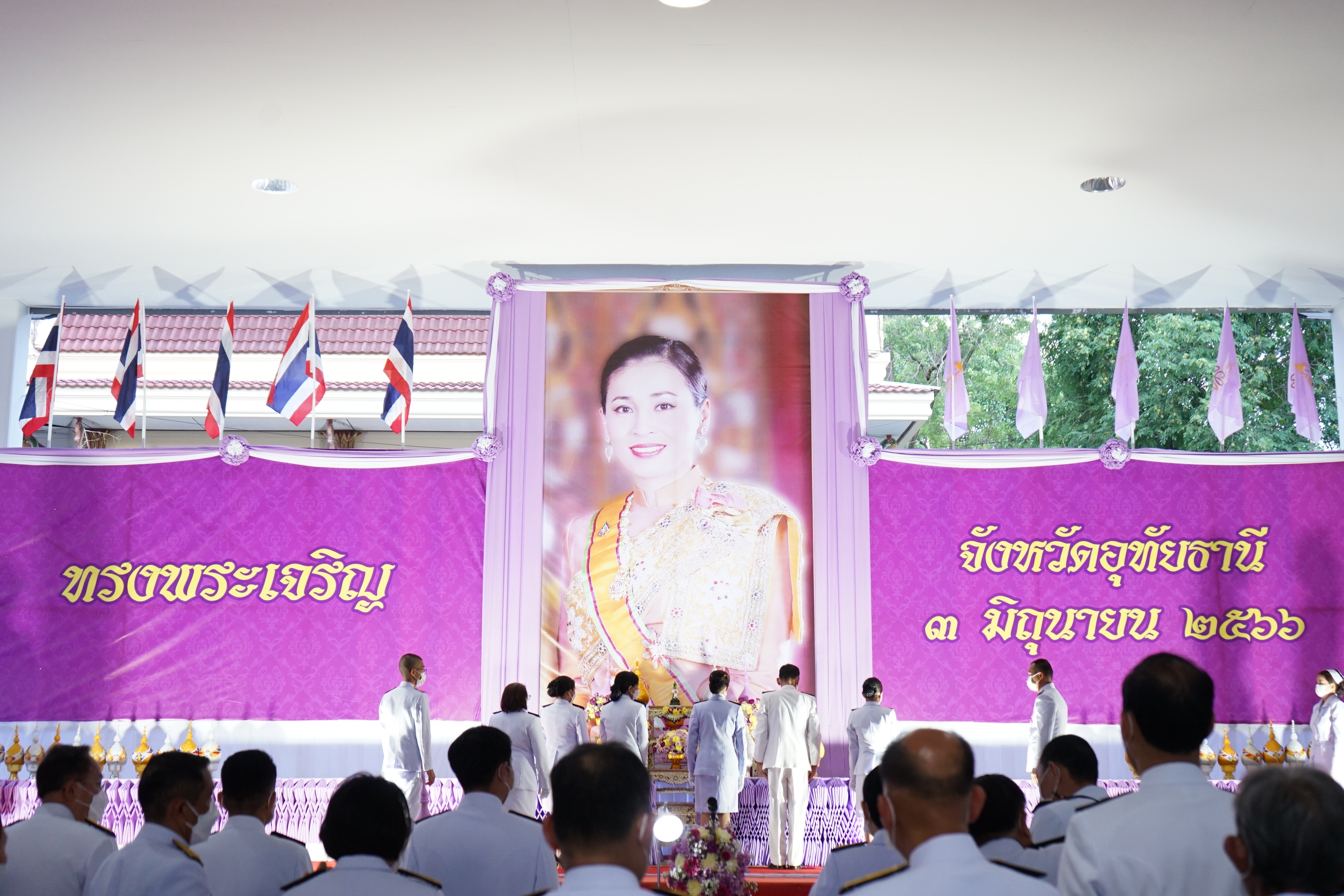 นายสมโภช โอทาตะ ผู้อำนวยการแขวงทางหลวงอุทัยธานี เข้าร่วมพิธีถวายเครื่องราชสักการะและวางพานพุ่ม และพิธีจุดเทียนถวายพระพรชัยมงคล เนื่องในโอกาส