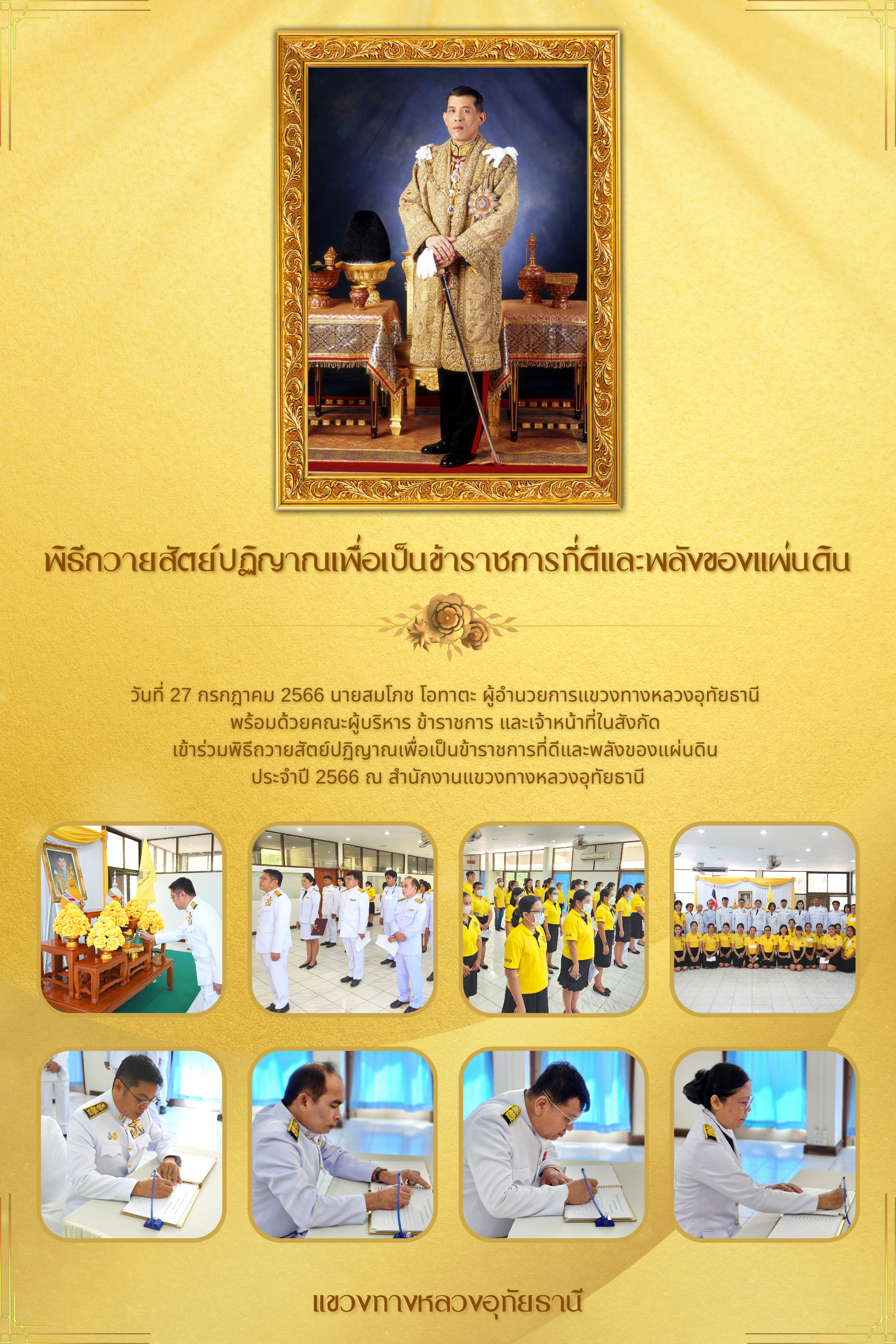 ได้จัดพิธีถวายสัตย์ปฏิญาณเพื่อเป็นข้าราชการที่ดีและพลังของแผ่นดินณ สำนักงานแขวงทางหลวงอุทัยธานี