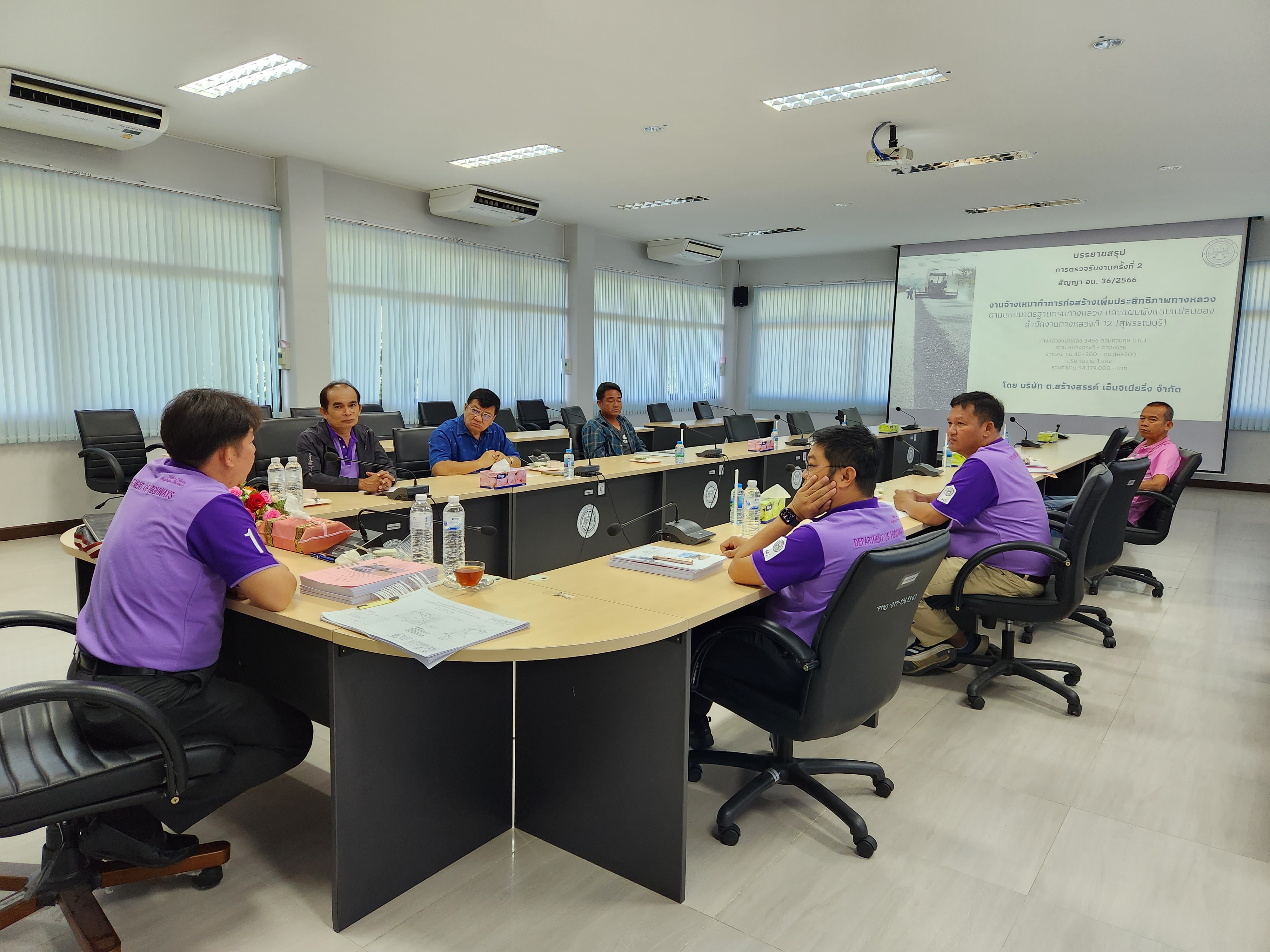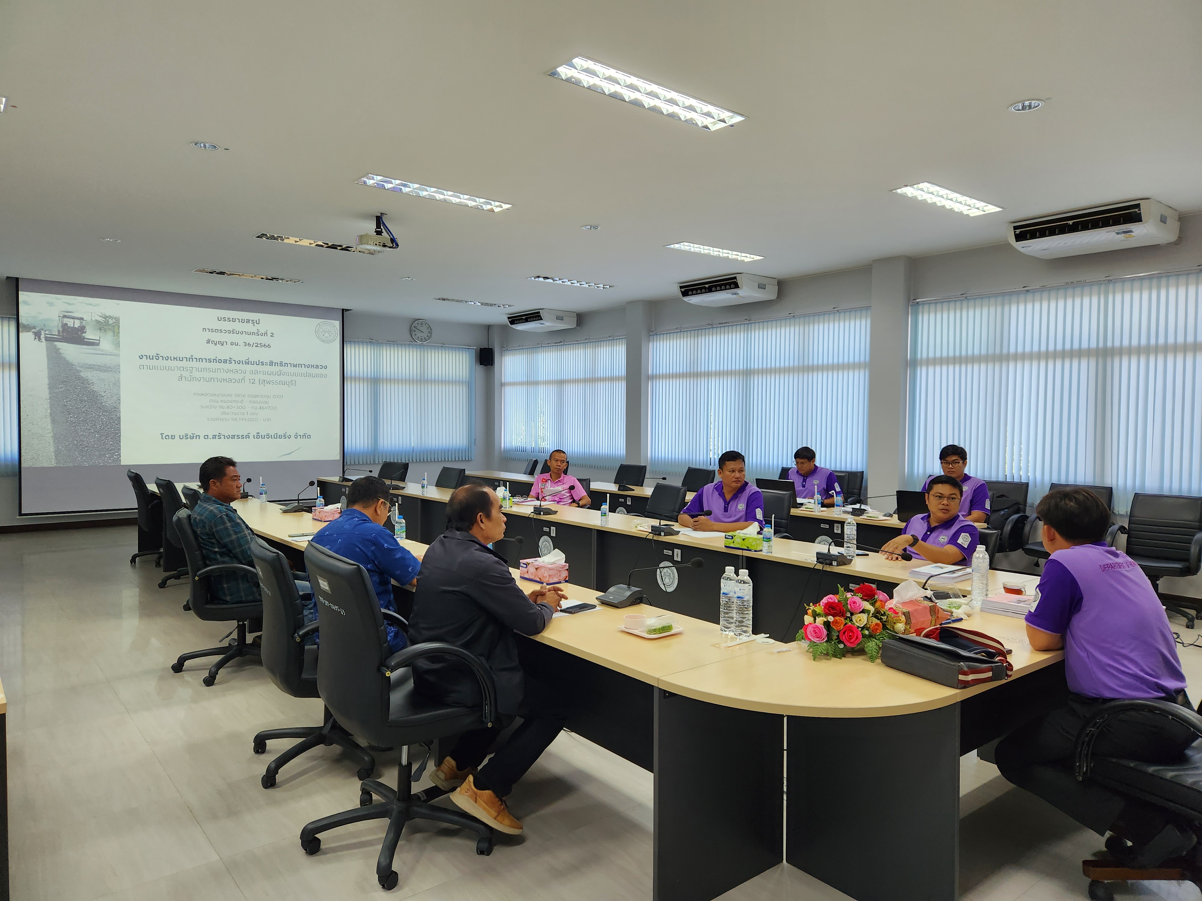 นายจตุพล เทพมังกร รส.ทล.12.1 ประธานคณะกรรมการตรวจรับพัสดุ พร้อมด้วย นายสมโภช โอทาตะ ผอ.ขท.อุทัยธานี และคณะกรรมการตรวจรับพัสดุ บรรยายสรุปและร่วมกันตรวจรับงานครั้งที่ 2 งานจ้างเหมาก่อสร้างเพิ่มประสิทธิภาพทางหลวง ทางหลวงหมายเลข 3456 ตอนควบคุม 0101 ตอน หนองกระดี่ - คลองข่อย ระหว่าง กม.40+300 - กม.46+700 ปริมาณงาน 1 แห่ง ตามสัญญาที่ อน.36/2566 โดย บริษัท ต.สร้างสรรค์ เอ็นจิเนียร่ง จำกัด เป็นผู้รับจ้าง