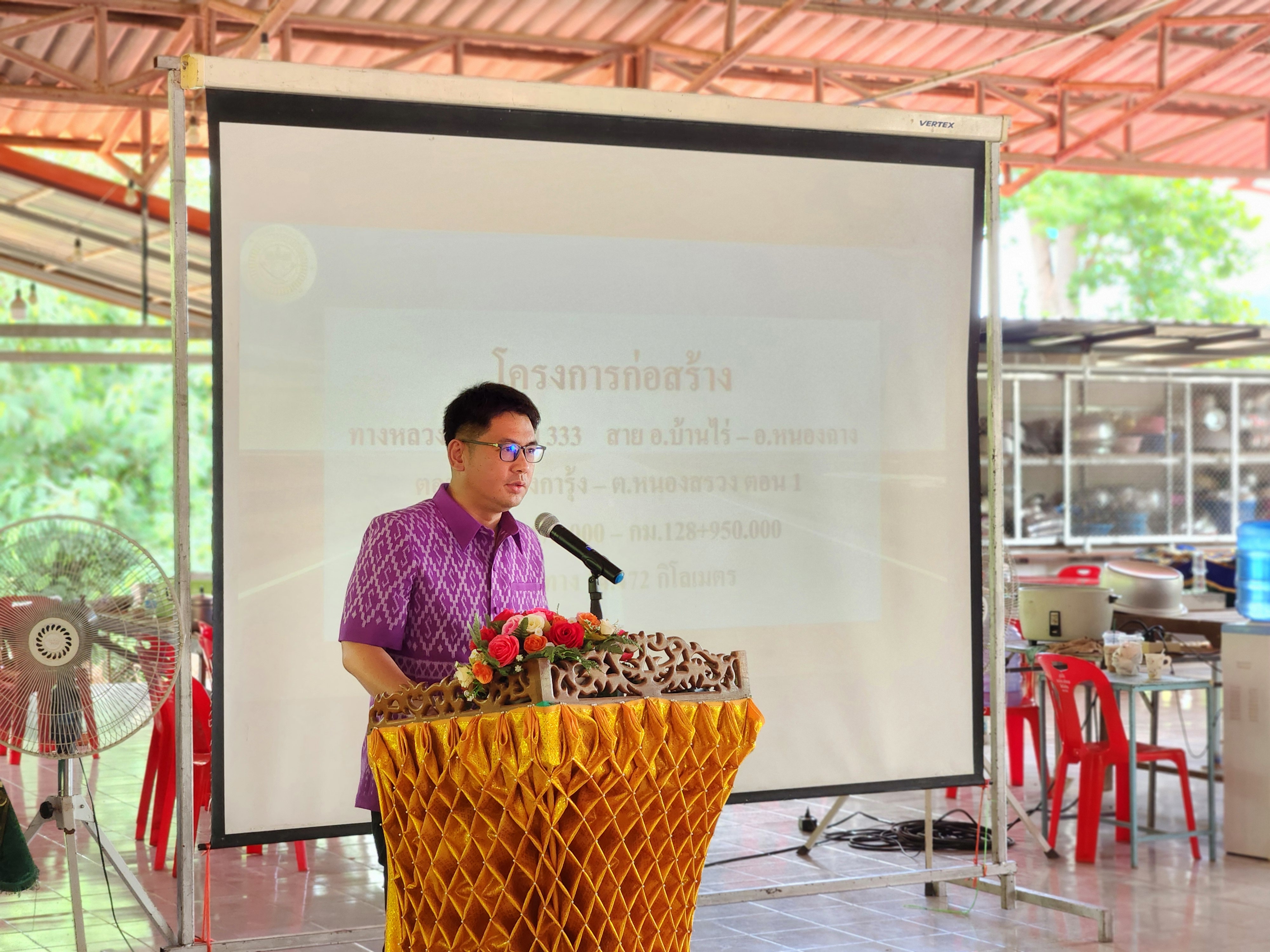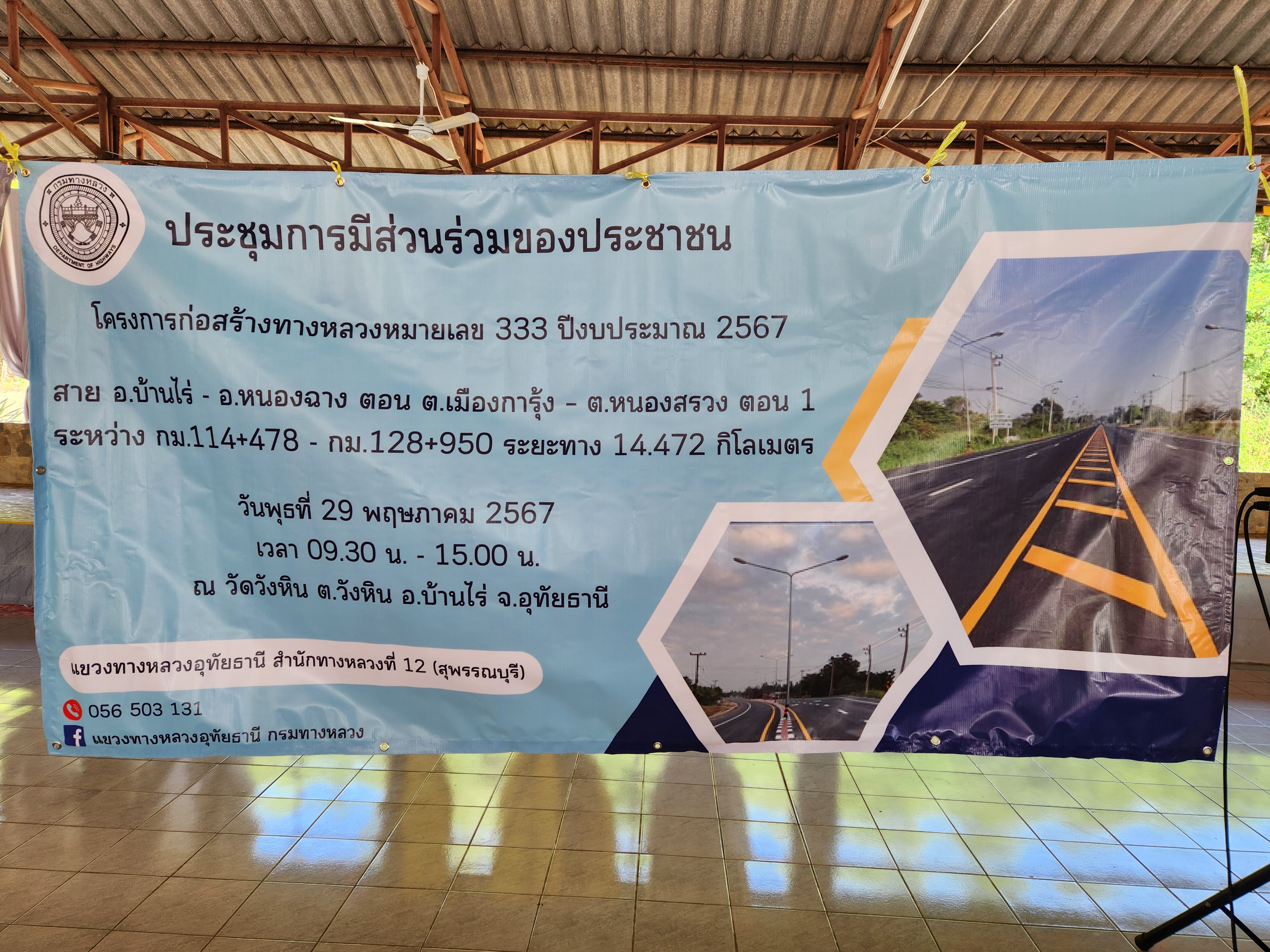 ประชุมการมีส่วนร่วมของประชาชนโครงการสำรวจและออกแบบพร้อมเตรียมการก่อสร้าง ทางหลวงหมายเลข 333 สาย อ.บ้านไร่ - อ.หนองฉาง ตอน ต.เมืองการุ้ง - ต.หนองสรวง ตอน 1 ระหว่าง กม.114+478 - กม.128+950