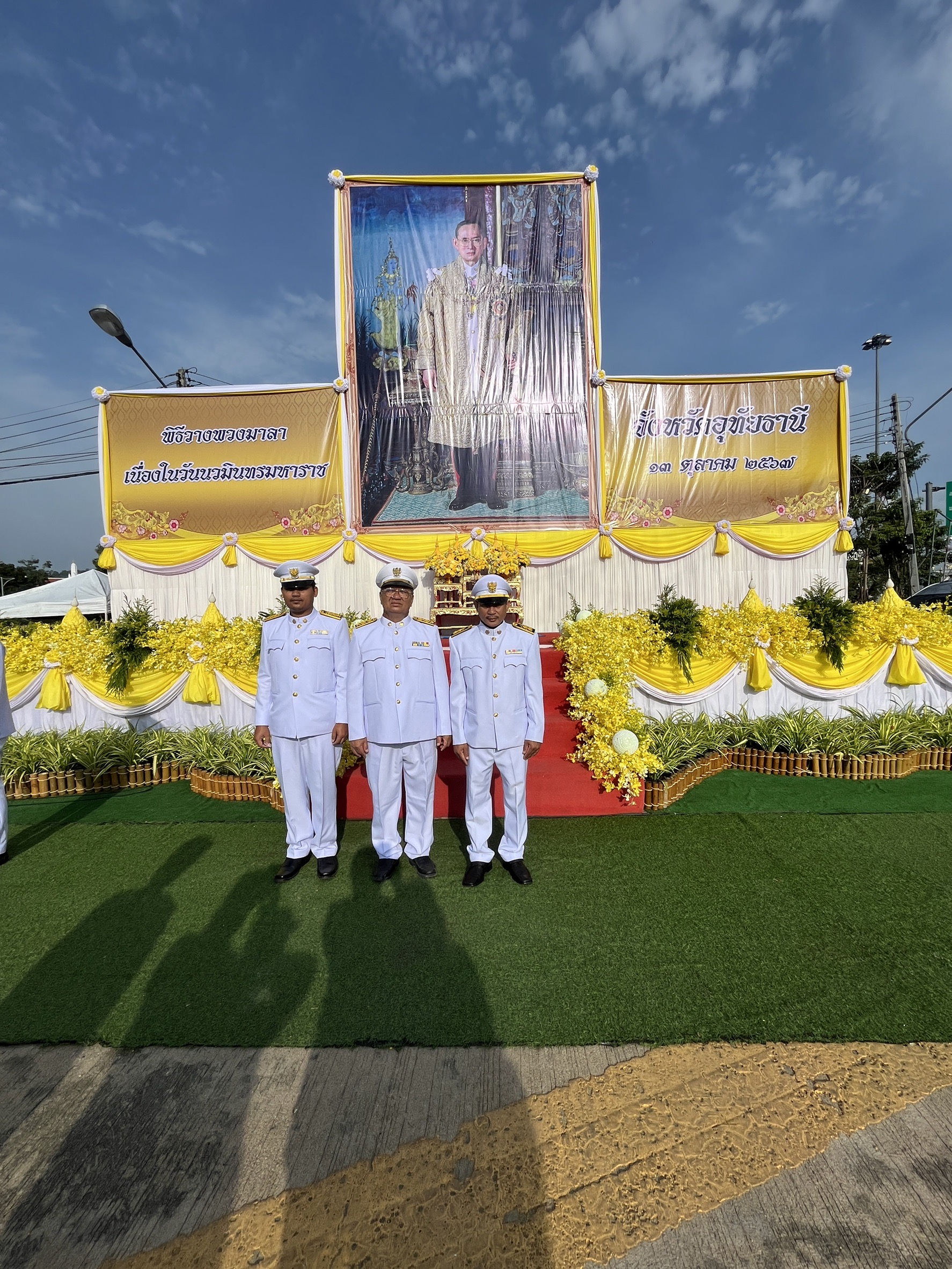 นายสมโภช โอทาตะ ผู้อำนวยการแขวงทางหลวงอุทัยธานี มอบหมายให้ นายอนันท์ ศรีเจริญ รองผู้อำนวยการแขวงทางหลวงอุทัยธานี นายเจริญลาภ อินทร์ประสิทธิ์ หัวหน้าหน่วยไฟฟ้า และนายศุภกร วิษณุพรรณ หัวหน้างานต้นไม้และสวน เข้าร่วมพิธีวางพวงมาลาและถวายราชสดุดี เนื่องในวันนวมินทรมหาราช ณ บริเวณวงเวียนหอนาฬิกา อำเภอเมืองอุทัยธานี จังหวัดอุทัยธานี