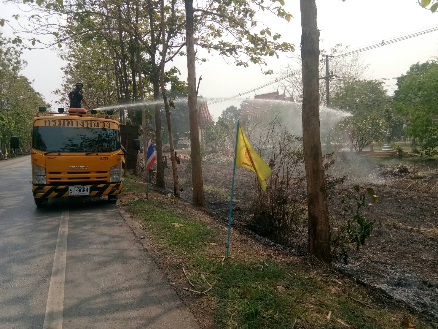 ดับไฟไหม้ข้างทาง บนทางหลวงหมายเลข 3438 ตอน ดินแดง - ไผ่งาม จำนวน 2 จุด จุดที่ 1ช่วงระหว่าง กม.25+900 - 26+200 ด้านซ้ายทาง จุดที่2 ช่วง กม.35+000 - 35+300 ด้านขวาทาง