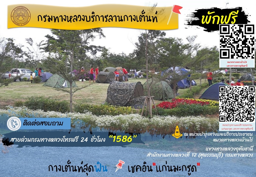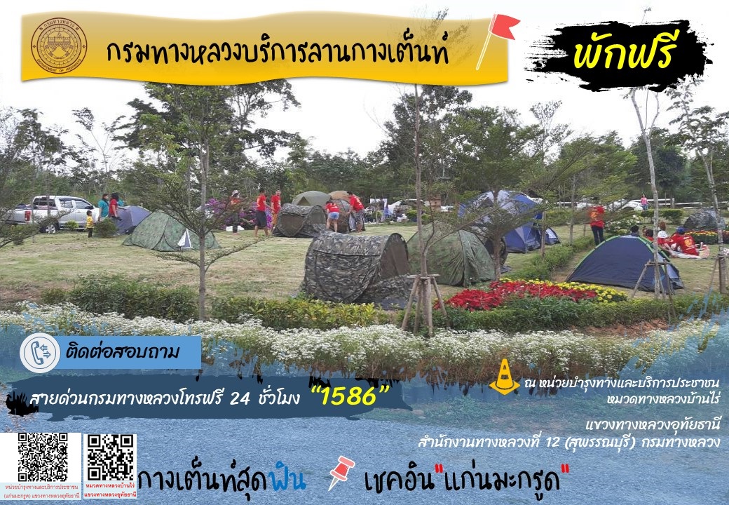 จุดบริการกางเต็นท์สำหรับประชาชนในบริเวณหมวดทางหลวงในสังกัดแขวงทางหลวงอุทัยธานี ช่วงเทศกาลปีใหม่ 2563
