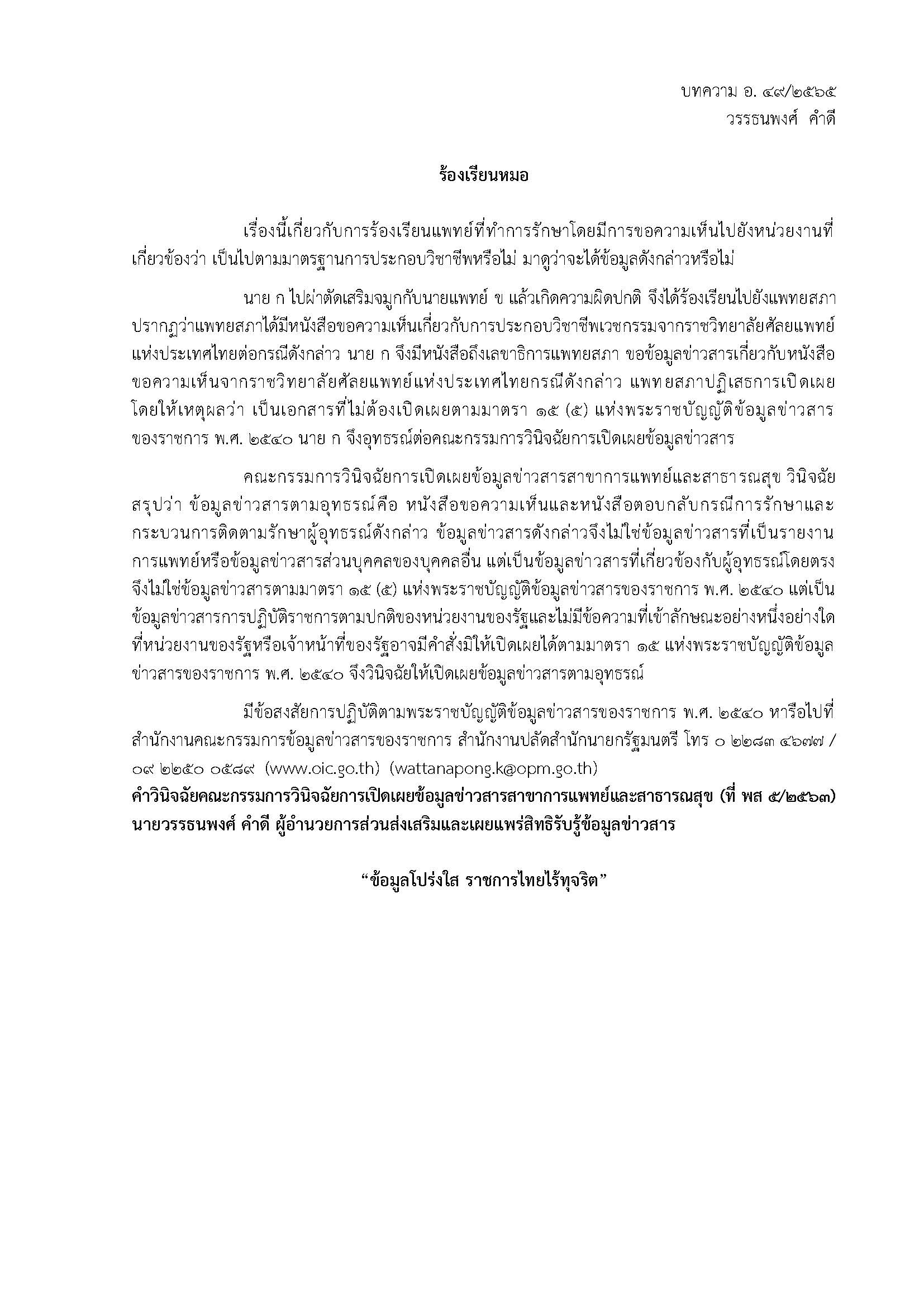 4. บทความเรื่อง ร้องเรียนหมอ