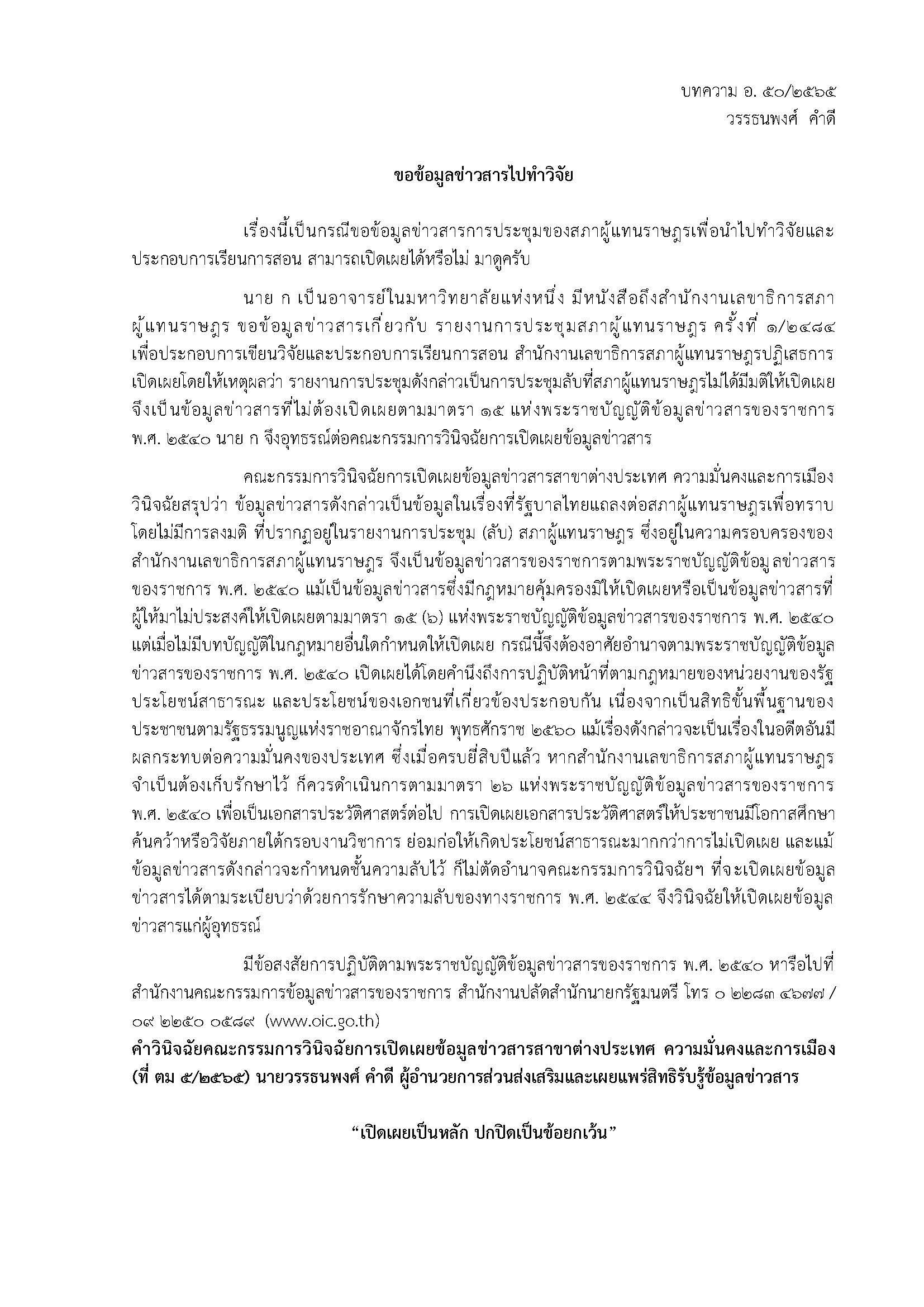 5. บทความเรื่อง ขอมูลข่าวสารไปทำวิจัย