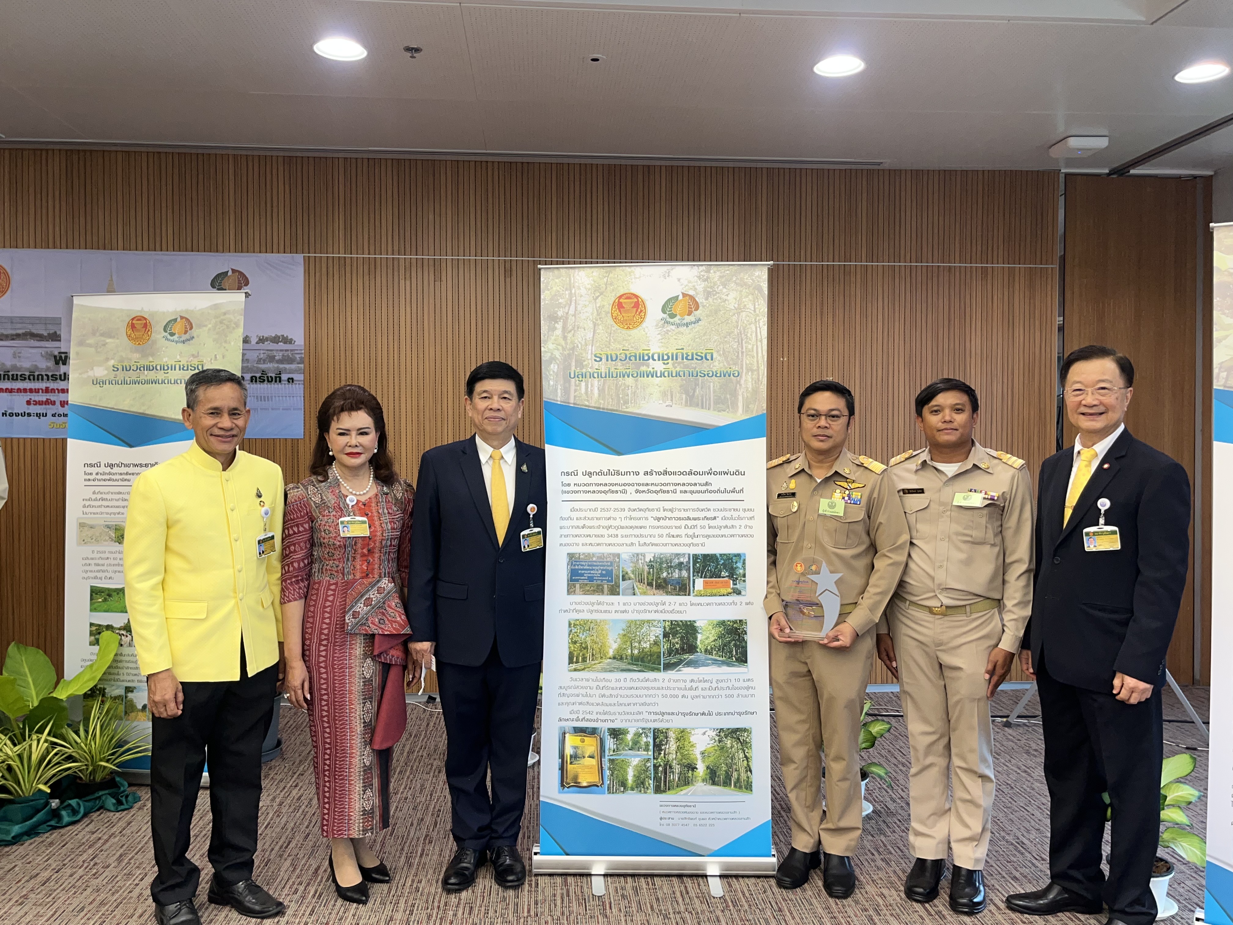 นายสมโภช โอทาตะ ผู้อำนวยการแขวงทางหลวงอุทัยธานี รับมอบรางวัลยกย่องเชิดชูเกียรติการปลูกต้นไม้เพื่อแผ่นดิน ครั้งที่ 3 จัดโดย คณะทำงานโครงการสมัชชาปลูกต้นไม้เพื่อแผ่นดินตามรอยพ่อคณะกรรมาธิการทรัพยากรธรรมชาติและสิ่งแวดล้อม วุฒิสภา ร่วมกับ มูลนิธิสานพลังเพื่อแผ่นดิน (มสผ.) ณ ห้องประชุม 402 - 403 ชั้น 4 อาคารรัฐสภา