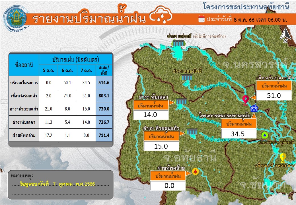 ข้อมูลข่าว : แจ้งเตือนสถานการณ์น้ำลุ่มน้ำเจ้าพระยา ประจำวันที่วันที่ 8 ตุลาคม 2566
